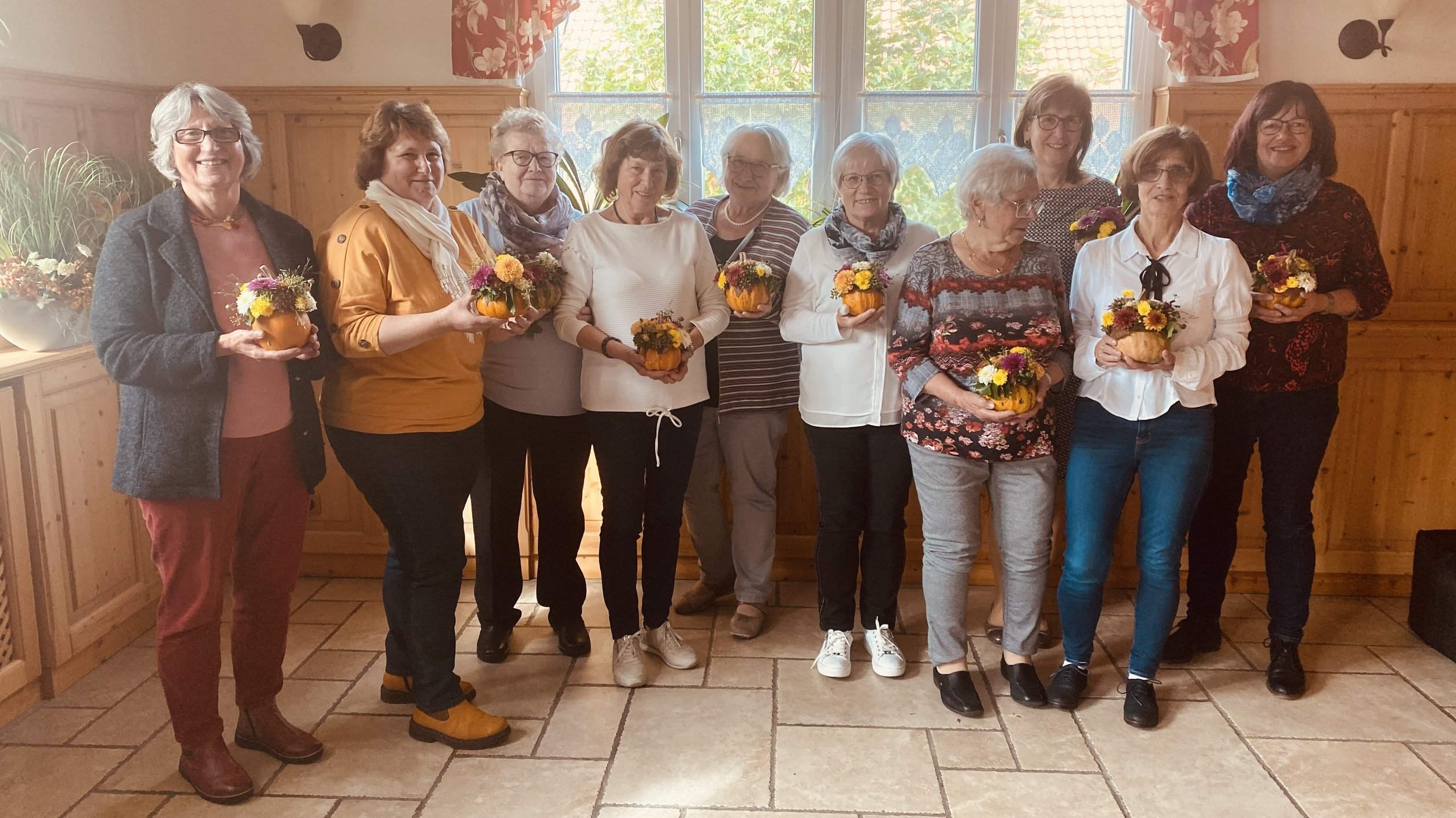 Anschließend fand ein gemeinsames Mittagessen statt. Die 1. Vorsitzende Gertraud Blank hielt einen kurzen Rückblick über die vielen Aktivitäten der letzten zehn Jahre. Zum Abschluss wurden die Gründungsmitglieder mit einem herbstlichen Blumengruß geehrt.