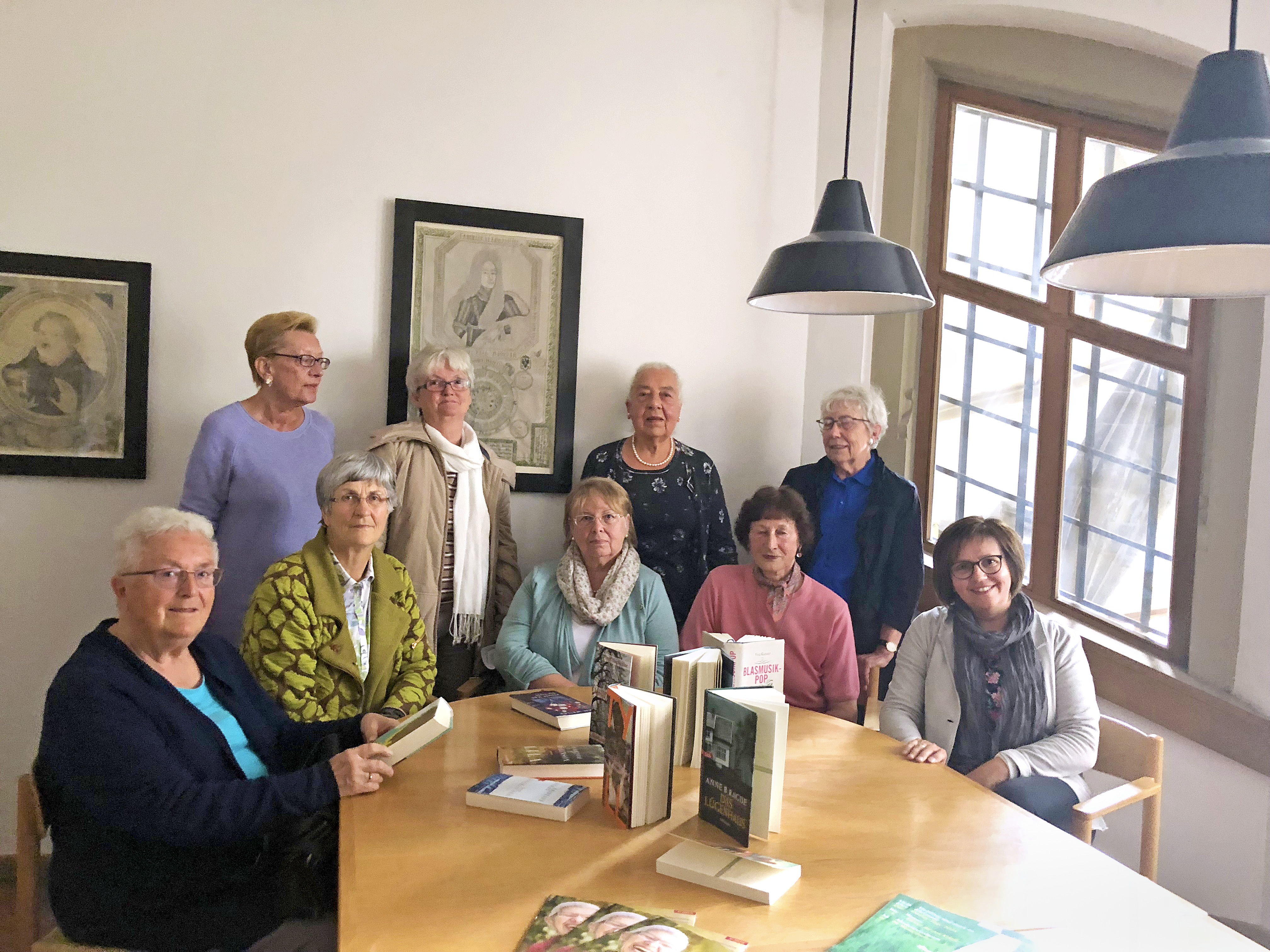 So stellte Gudrun Lutzner bei der ersten Zusammenkunft des Literaturkreises am Montag, 4.10.1998, das damals viel diskutierte Buch von Donna W. Cross„Die Päpstin“ vor. 19 interessierte Frauen waren zur ersten Lesung gekommen und beteiligten sich rege an der anschließenden Diskussion. Das zweite Buch stellte Margot Schwob im November mit dem Titel„Die Flucht der Heiligen Familie durch das Königreich Böhmen“ von Otfried Preußler vor. Nach und nach fanden sich immer mehr Zuhörerinnen ein, darunter auch Frauen, die sich bereit erklärten, selbst ein Buch vorzustellen. Der Funke war also übergesprungen.