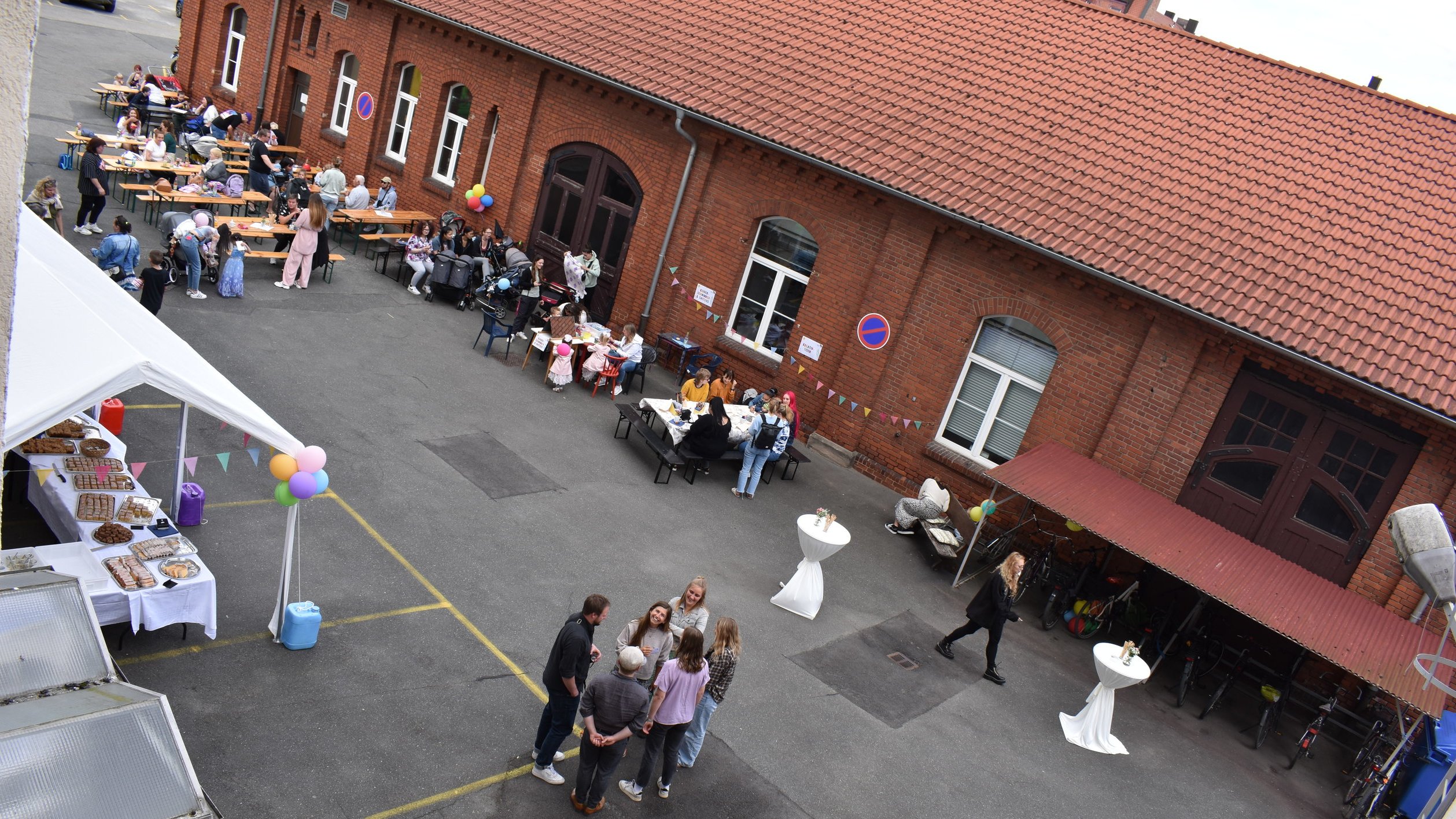 Beim Sommerfest am Nachmittag mit Hüpfburg, Kreativständen und gegrillten verwandelte sich der Innenhof der Einrichtung für die Familien in ein bewegtes, buntes Treiben.