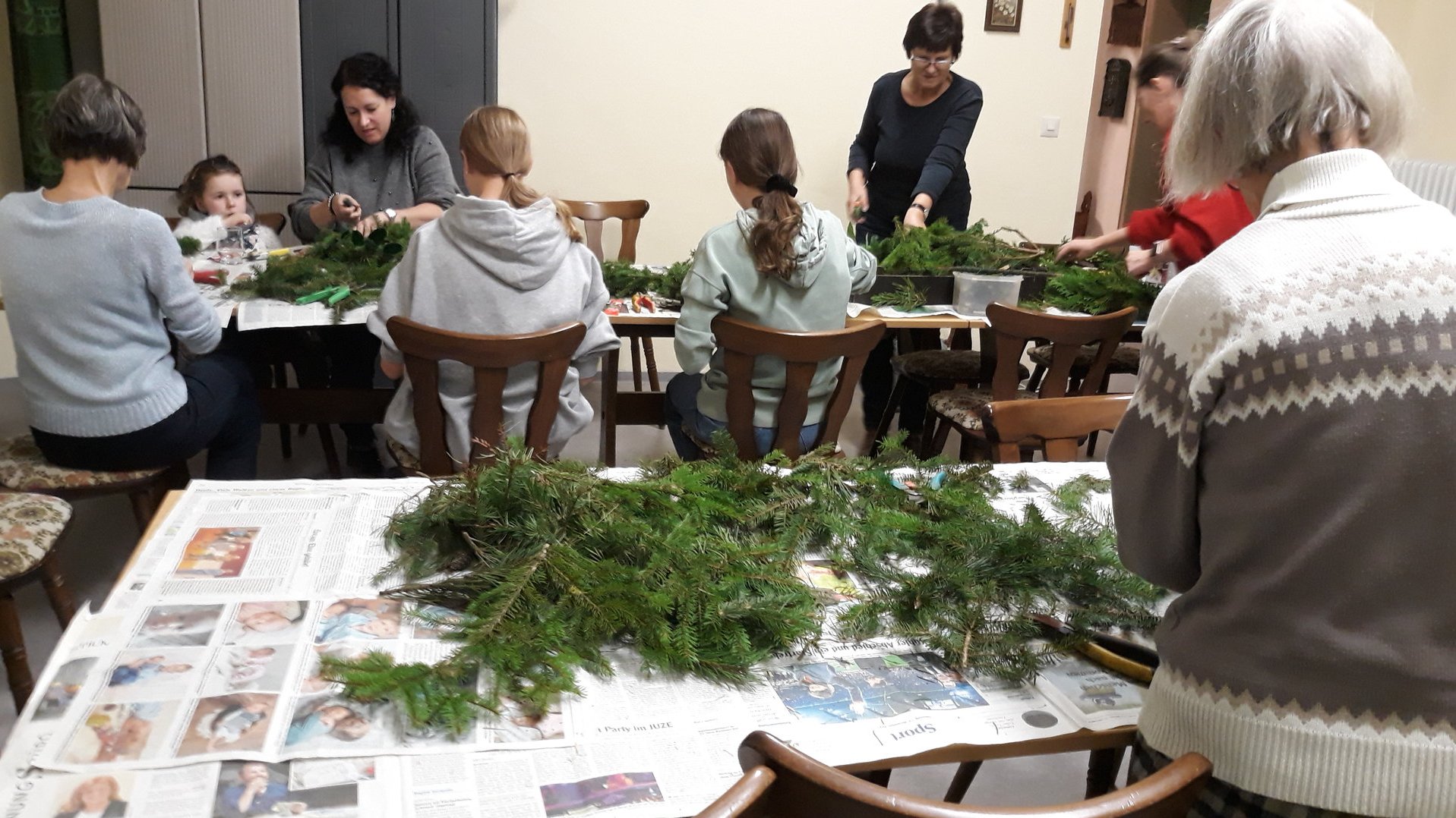 Noch nie gesehen? Noch nie beim Binden dabei gewesen? Kein Problem, mit den kundigen Frauen des DEF in Nördlingen glückt auch Anfängerinnen allen Alters ein schöner Kranz. Mit Anleitung gelingt es und die Freude ist groß! So trafen sich einige DEF-Mitglieder, Frauen und Mädchen, zum Adventskranzbinden und hatten es dabei sowohl lehrreich als auch lustig. Gemeinsam wurde beschlossen, im nächsten Jahr mit mehr Frauen zusammen Adventskränze zu binden, so Gott es will.