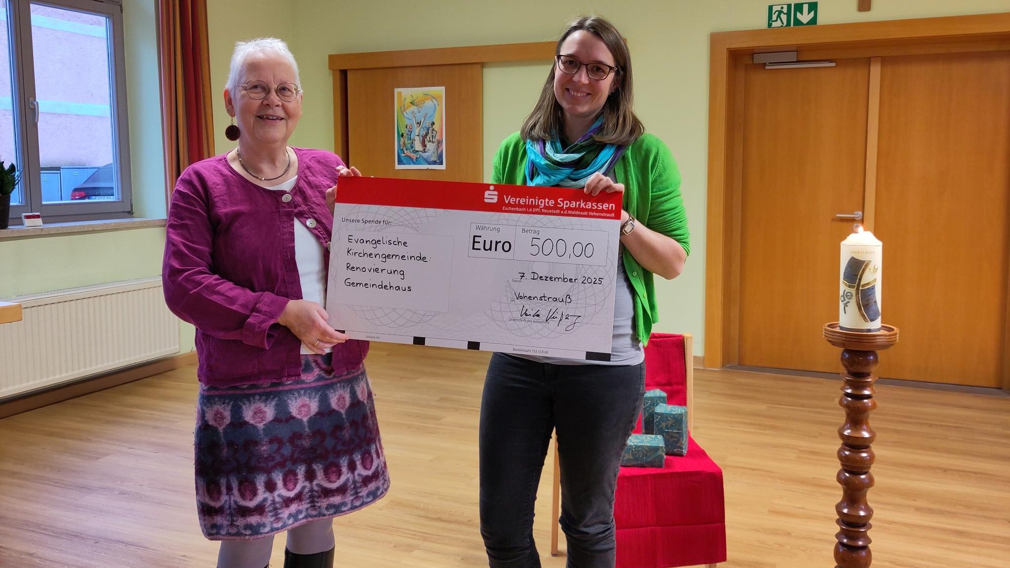 Außerdem wurde an diesem Nachmittag eine 500‑Euro‑Spende des Frauenbundes an die Evangelische Kirchengemeinde übergeben. Der Betrag kommt der Sanierung des Gemeindehauses zugute und soll die Arbeit vor Ort unterstützen.