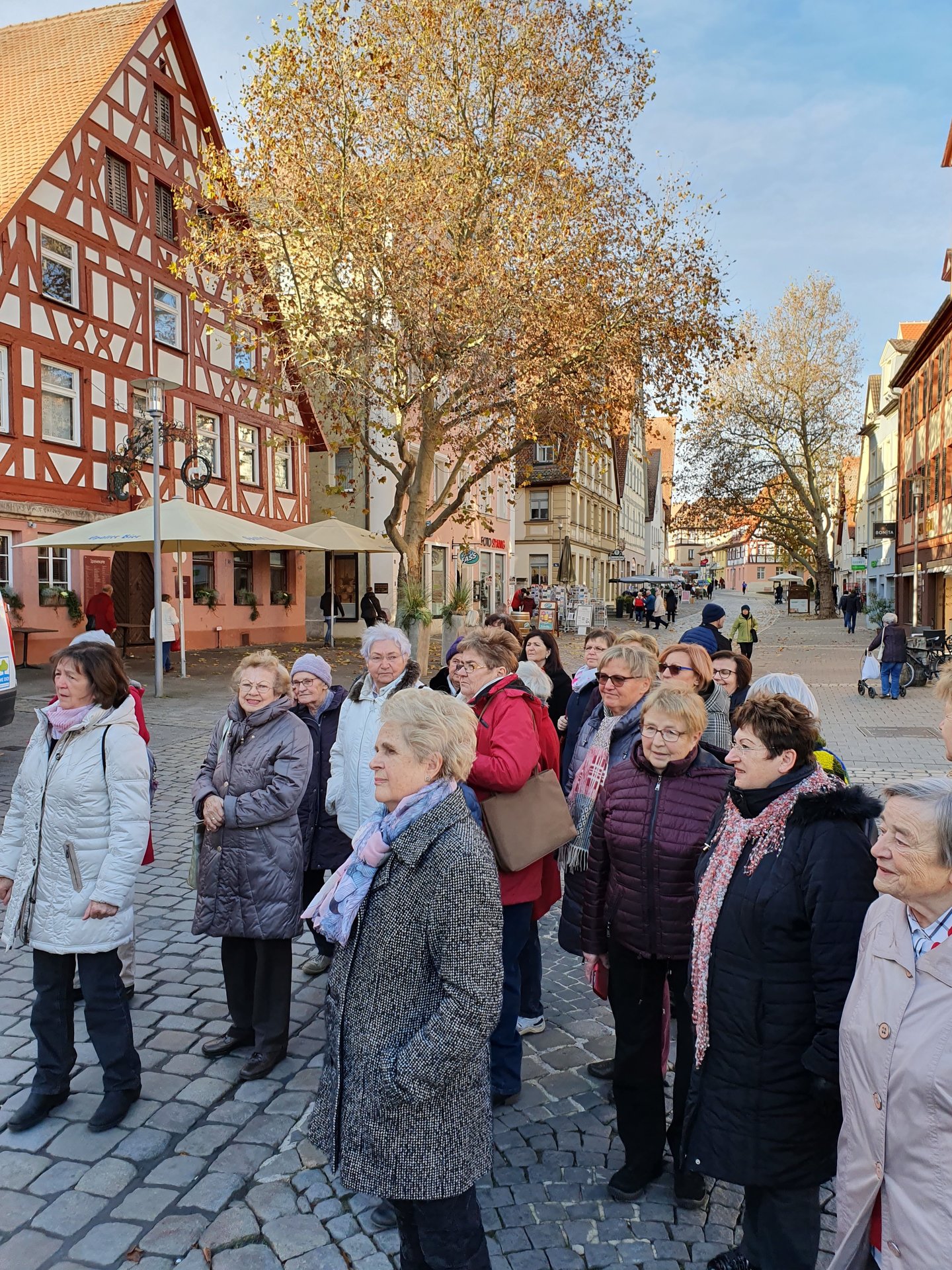 Dass dieser der Platz der Abfassung der von Melanchthon selbst vermittelten „Schwabacher Artikel“ und somit eine originäre Stätte der Reformation war, konnten die geschichtsinteressierten Teilnehmerinnen auf einer Stadtführung durch Gerhard Ittner neben vielem Wissenswerten aus der Schwabacher Stadtgeschichte erfahren. Die Betrachtungen führten bis in die Zeit der fränkischen Landnahme zurück und konnten durch das Patrozinium der Stadtkirche St. Martin ebenso wie durch die Dialektforschung erhärtet werden. Der Weg führte auch hinauf zur Franzosenkirche, die für die religiöse Toleranz und die Aufnahme hugenottischer Flüchtlinge durch die brandenburgisch-ansbachischen Markgrafen steht. Der Weg führte auch zum Spital und hinunter an die Schwabach. An den Rundgang schloss sich eine Kirchenführung in der Stadtkirche an.