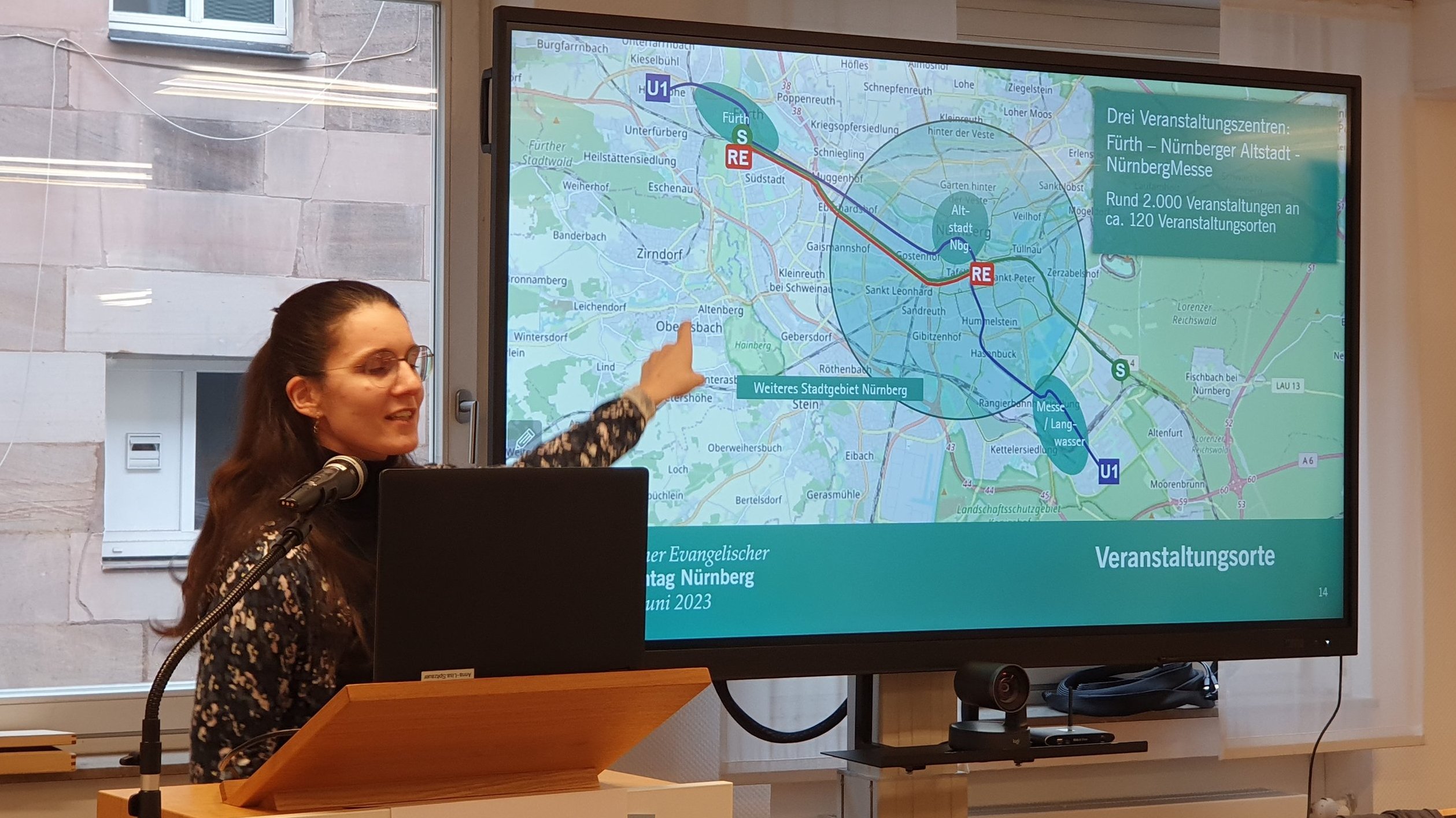 Im Mittelpunkt dieser Veranstaltung standen aber Informationen rund um den Deutschen Evangelischen Kirchentag (DEKT), der vom 7. bis 11. Juni 2023 in Nürnberg und Fürth stattfinden wird. Anna Lisa Spitzauer vom DEKT stellte den Anwesenden den aktuellen Planungsstand vor: