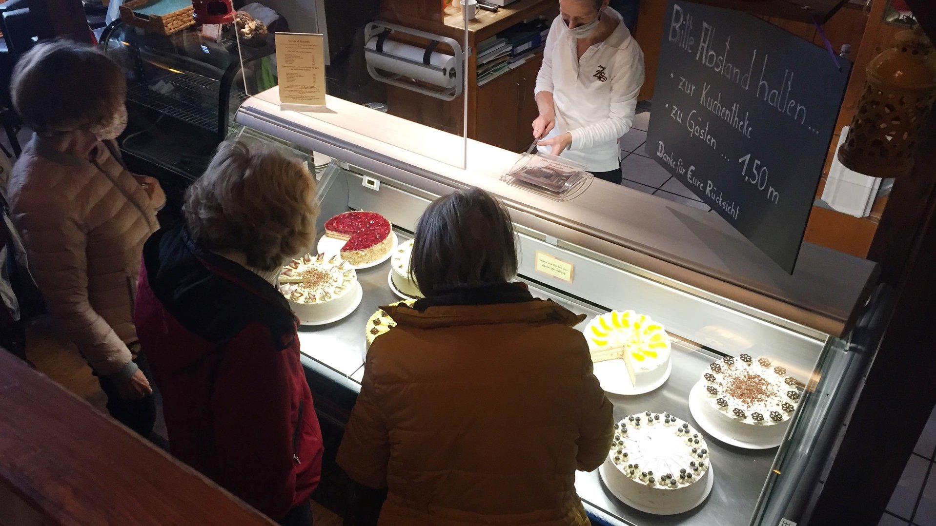 Einige Kilometer weiter, in Eichfeld, haben eine junge Konditorin und ihr Partner aus ihrer großen Scheune eine „Zuckerscheune“ kreiert. Darin untergebracht ist ein größeres Café. Die Schönheit, Kunstfertigkeit und Vielzahl der Torten in der Auslage war überwältigend. Es gab aber auch Herzhaftes, wie Schinken- und Käsebrote.
