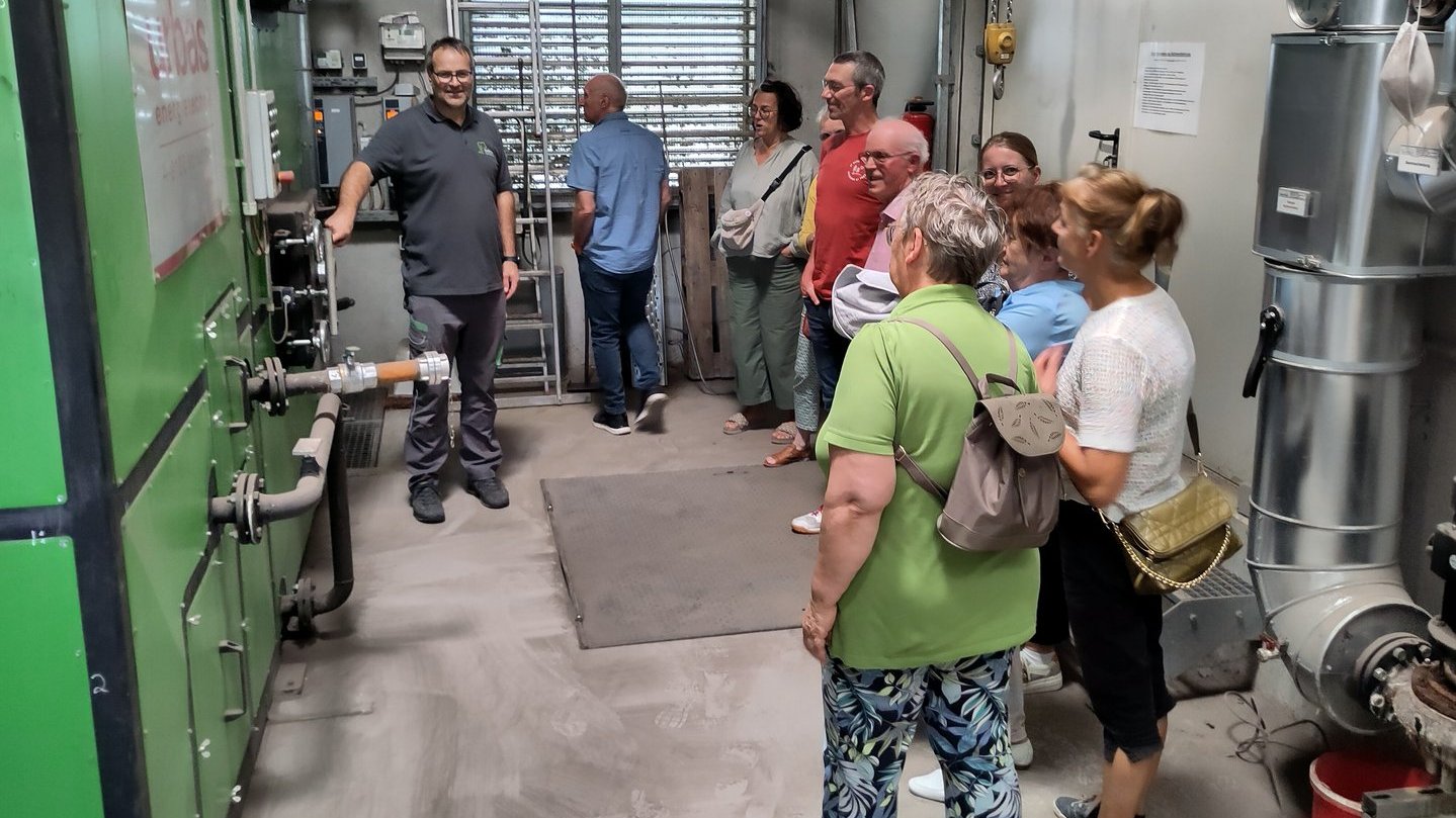 Jede der 12 teilnehmenden, sehr interessierten Frauen und Männer ist schon einmal an der Hackschnitzelanlage am südlichen Ortsrand von Vohenstrauß vorbeigefahren, aber keine/r wusste bisher, wie es im Inneren des Bioheizwerkes der Naturenergie Eslarn-Vohenstrauß ausschaut. Dies hat sich am 19.09.2025 bei der Besichtigung der Anlage geändert. Im Schulungsraum der neuen Geschäftsstelle gab uns Josef Maier, Geschäftsführer der Waldbesitzervereinigung zunächst einen Überblick über die Entstehung des Heizkraftwerkes, das seit Dezember 2010 im Betrieb ist, informierte über wichtige Abläufe, nannte einige Zahlen und beantwortete viele Fragen. Von dem leistungsstarken Nahwärmenetz werden zentrale Einrichtungen wie Schulen, ehemaliges Krankenhaus, Altenheim, die Kirchen und deren Gemeindehäusern mit umweltfreundlicher Wärme versorgt. Herzstück der Versorgung ist ein 800 kW Biomassekessel, der den Großteil des Energiebedarfs emissionsarm deckt – ergänzt durch einen Heizölkessel zur Spitzenlast- und Notversorgung. Die zuverlässige Holzversorgung erfolgt durch die Waldbesitzervereinigung (WBV) Eslarn-Vohen-strauß – nahezu 100 % des Brennstoffs stammen aus der Region. Mit dem Projekt wird ein Zeichen für die kommunale Energiewende gesetzt. Mit der Kombination aus lokaler Wertschöpfung, technischer Effizienz und CO₂-neutraler Wärmeerzeugung ist das Werk ein Vorbild für nachhaltige Nahwärmekonzepte.