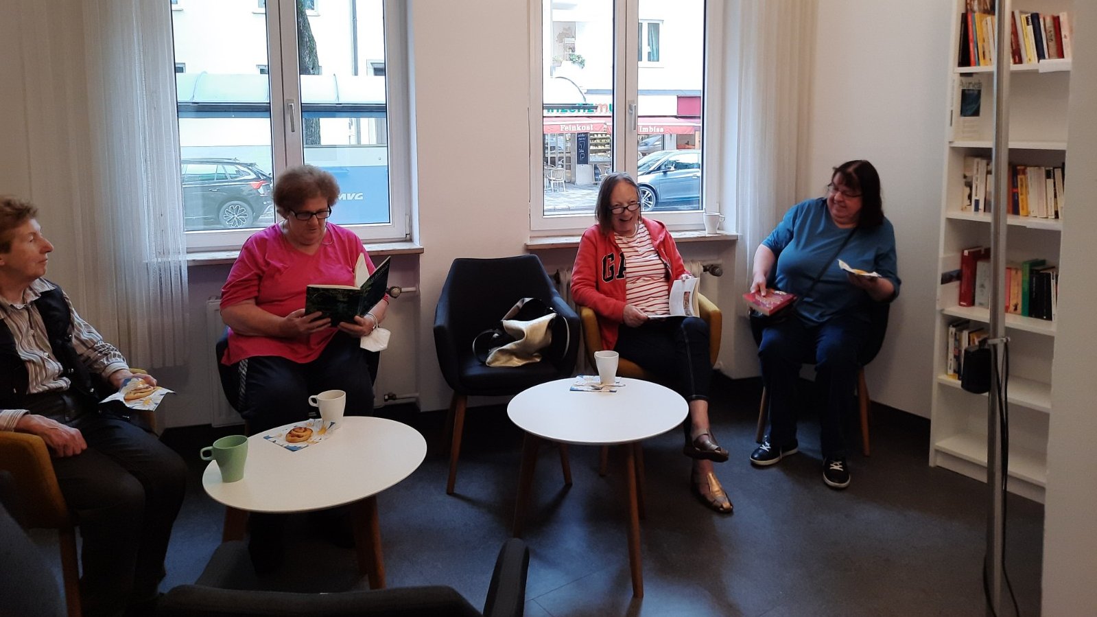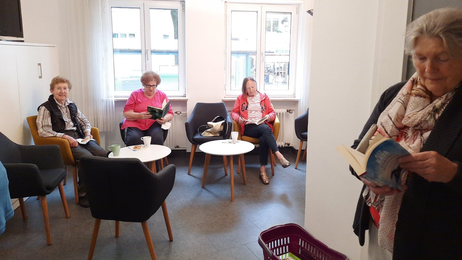 Am Mittwoch den 28.07.2021 konnten wir im Haus am Kufsteiner Platz endlich den Mieterinnen unsere Bücherausleihe präsentieren. Bei Kaffee und selbstgemachtem Gebäck konnten die Mieterinnen sich einen Überblick verschaffen über die Vielfalt der gespendeten Bücher. Immer mittwochs oder bei Bedarf können nun Bücher ausgeliehen werden.