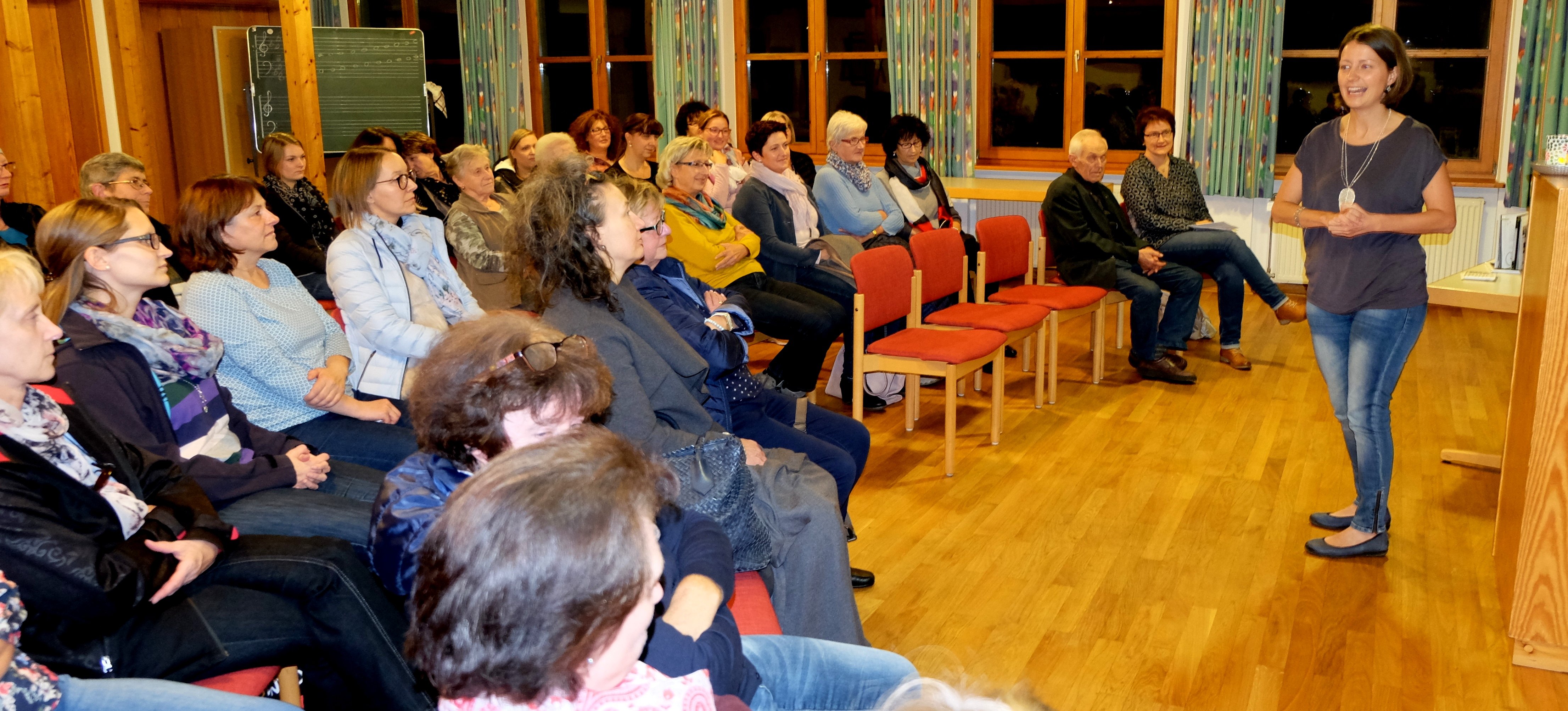Vorsitzende Christa Riedel konnte sich über ein volles Gemeindehaus freuen, zumal sich auch Frauen aus der Region auf den Weg machten, dieses immer wieder aktuelle Thema anzuhören und daraus Schlüsse zu ziehen. Und das konnte man am Abschluss eines lebendigen und voller Lebensfreude geführten Vortrages. Die Religionspädagogin verstand es, ihre Zuhörerinnen und die beiden interessierten Männer in den Bann zu ziehen. Die Mutter von drei Kindern beschäftigt sich seit mehr als fünf Jahre mit dem Entrümpeln, auch von Sachen, die einem lieb geworden sind. Ein Spaziergang endete am Haus und das Entrümpeln reichte vom Keller bis zum Dach, von Leib und Seele, wo sich viele Erinnerungen, Erfahrungen, Begegnungen, Schmerzliches und Schönes ansammelte. Ganz offen bekannte die Referentin, dass Entrümpeln zu ihrer „ großen Liebe „ geworden ist. Irgendwann ist der Moment gekommen, da wir unser Leben entrümpeln müssen. Begonnen bei den Schulheften aus der 1. Klasse bis zur großen Blumentopfsammlung. Dabei sprach sie von „ heiligen Dingen „. Eine nach einführenden Sätzen bewusst eingelegte kleine Pause brachte die Zuhörerinnen zur spontanen Unterhaltung über das Geschehen im eigenen Haus oder in der eigenen Wohnung. Bei dem Ausspruch: „ Mich bewegt das Leben „ erzählte die Religionspädagogin über die eigene Familie. Entrümpeln darf zu keiner Verschiebeaktion werden. Vielmehr gelte es, immer wieder aufzuräumen, zu entrümpeln. Je mehr sich ansammle, desto mehr komme man ins Stocken. Man müsse sich auch von Erinnerungen über Gegenstände lösen können, zumal viele Dinge herumgeschleppt werden, die man nicht mehr braucht. Wer entrümpelt wirft Ballast ab und sorgt für Ordnung. Alle drei Jahre richtig „ Ausmisten „ in Haus und Hof und das nicht unter Zeitdruck und schlechtem Gewissen sei ganz wichtig. Die Arbeit müsse Freude machen. Müllsäcke und eine Schnur zum Schließen sollten längst bereit stehen. Durch ihre offene und begeisternde Art des Vortrages vermittelte die Seelsorgerin wahre Lebensfreude. Man spürte förmlich die Ernsthaftigkeit und das Talent ihrer gewählten Worte. Dass auch unsere Seele ab und an eine Entrümpelung braucht, damit sie wieder frei, jung und unbeschwert sein kann, hob die Referentin mit Freude hervor. Impulse, Ideen und Fragen zum Nachdenken werden dazu anregen, auch die Lebensentrümpelung anzugehen – und dies nicht mit schlechter Laune, sondern immer mit einem Lächeln auf den Lippen. Das Dankeschön für diesen fesselnden Vortrag drückten die Zuhörer mit lang anhaltenden Beifall aus, dem sich Vorsitzende Christa Riedel mit einem Präsent anschloss.Pressebericht von Fred Lehner (Der Neue Tag) Bild) Eines wurde im Vortrag von Kathrin Karban-Völkl aus Kemnath-.Stadt beim Evangelischen Frauenbund deutlich: „ Den Sinn des Lebens findet man nicht in den Gedanken und Sorgen, sondern im Vertrauen auf Gott „.Bild: le