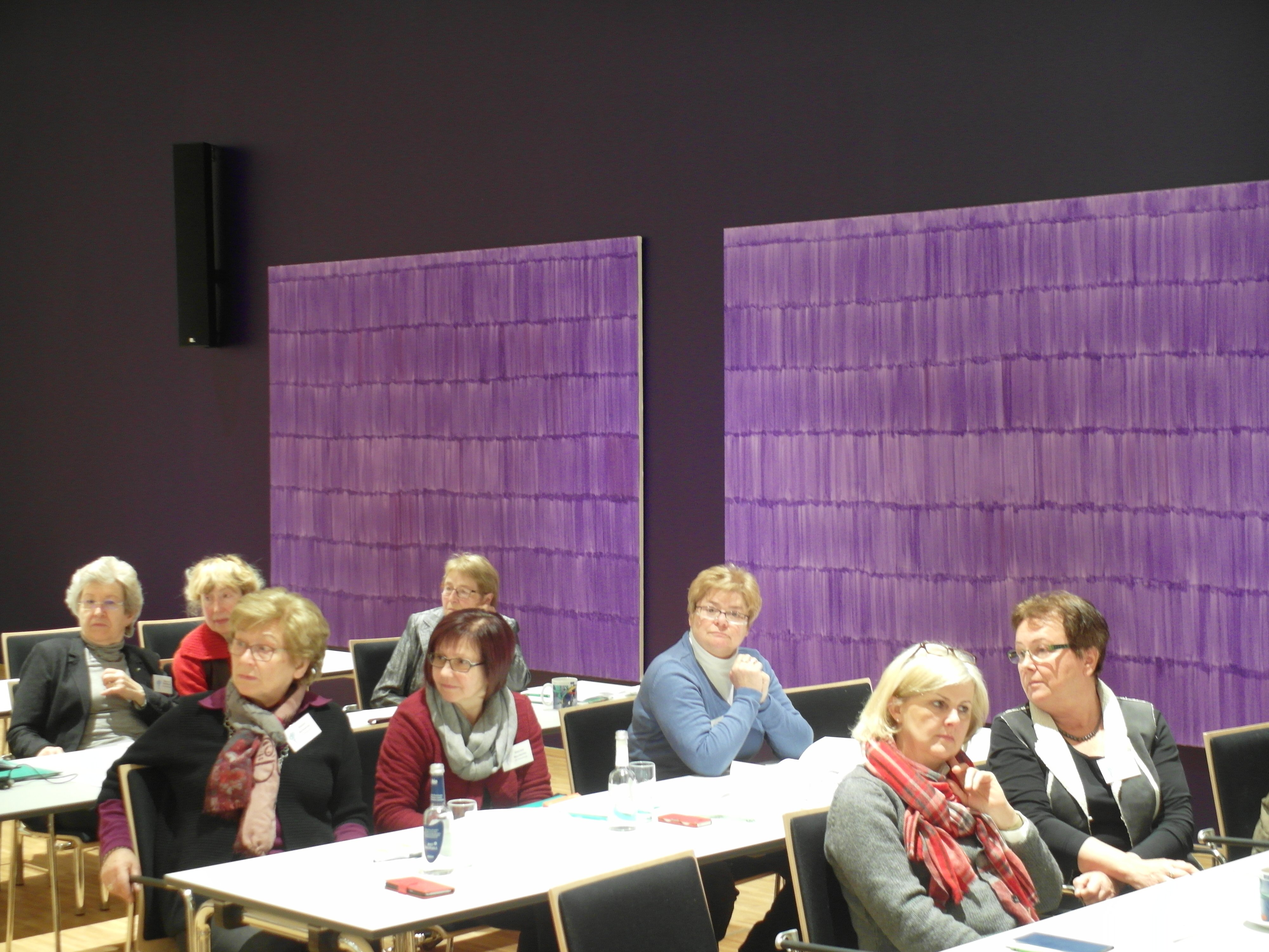 Von sozialen Aktionen und Bildungsveranstaltungen, sowohl in Vorträgen als auch auf gemeinsamen Studienfahrten, war in den Berichten der Ortsverbände und Anschlussvereine vielfach die Rede. Auch Probleme der Arbeit vor Ort wurden diskutiert und Ratschläge ausgetauscht. Berichte über gelungene Veranstaltungen teilten nicht nur die eigene Begeisterung den anderen mit, sondern dienten dabei auch als best-practise-Beispiele und Ideenbörse für den eigenen Verband. Allgemeine Freude löste die bevorstehende Gründung eines neuen Ortsverbands für das Oberland am Standort Sauerlach aus. Birgit Kastenmüller gab einen Bericht über die Pläne der neuen Gruppe und vertrat den künftigen OV Oberland souverän im Kreis der DEF-Frauen.