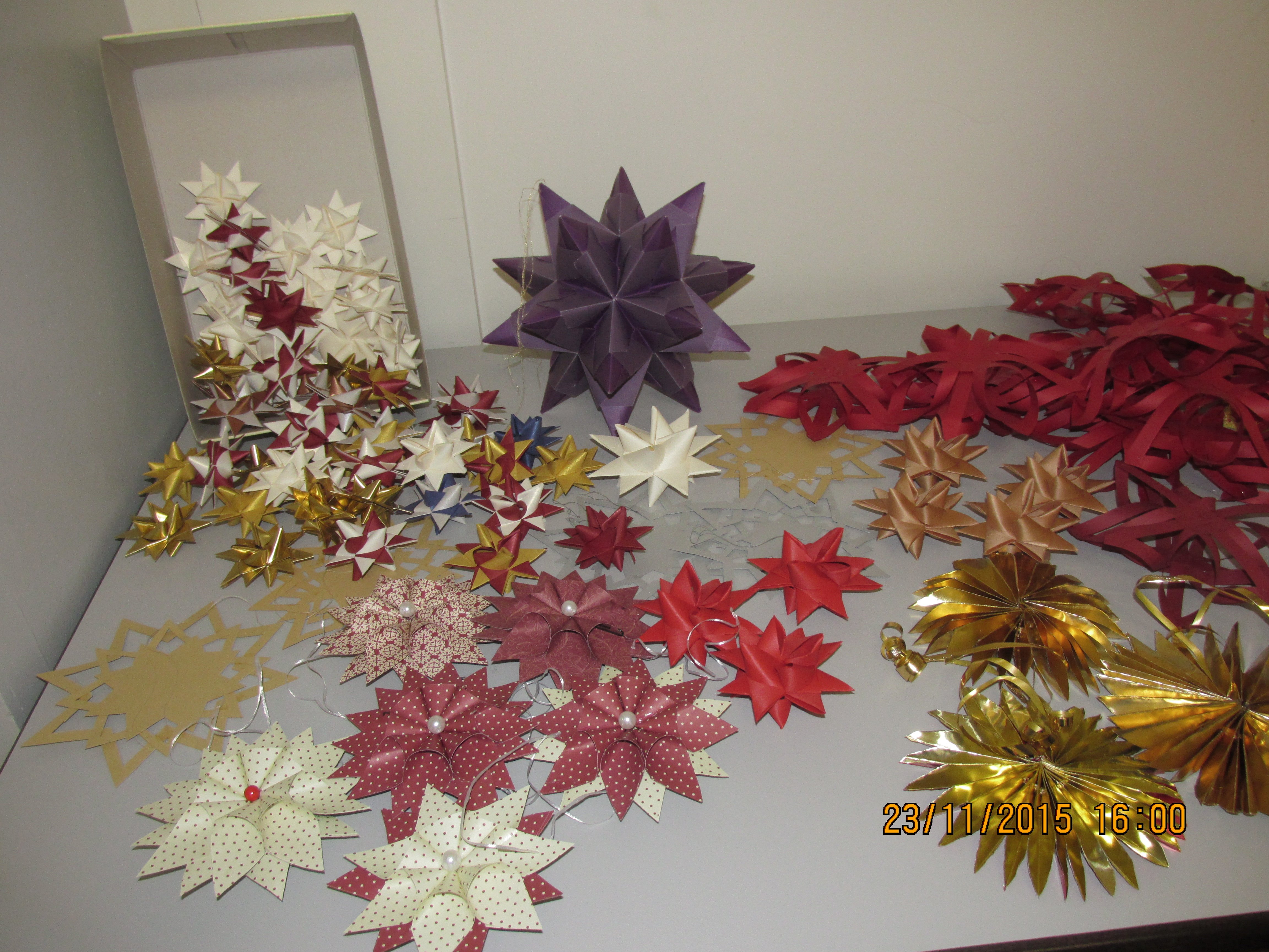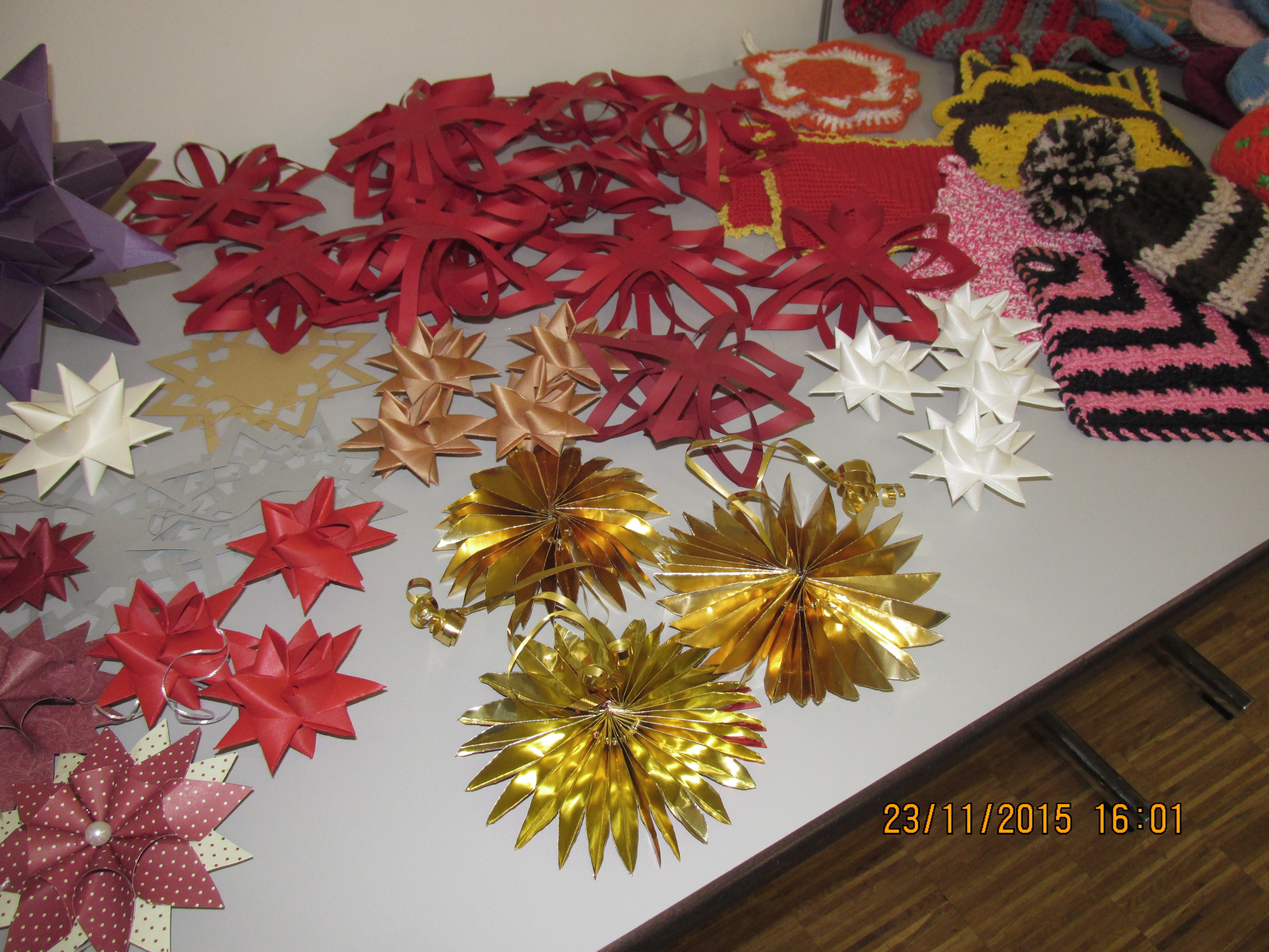 Und auch in diesem Jahr wurden unter der Leitung von Frau Kurth Weihnachtssterne und Engel für die Aktion "Sternstunden" des Bayer. Rundfunks gebastelt. Zusammen mit Strümpfen, Babysöckchen, Mützchen und Schals wurde alles auf dem Stand des BR beim Nürnberger Weihnachtsmarkt verkauft. Damit sollte zum wiederholten Mal die Aktion für Bedürftige und Kinder in Not unterstützt werden.