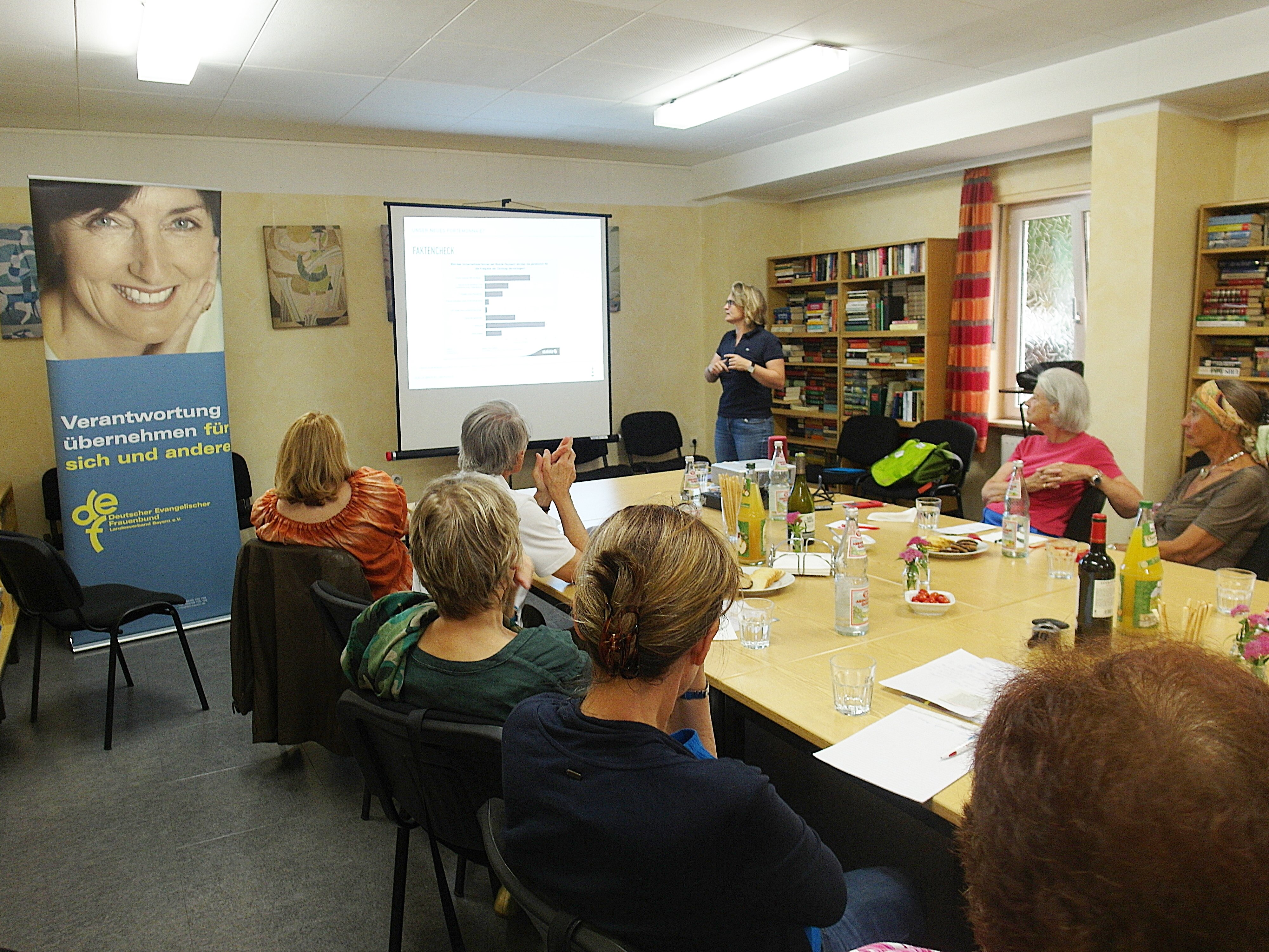 Bei dem vielen Vorwissen, das in allen Ortsverbänden und Anschlussvereinen bereits vorhanden ist, wird den Teilnehmerinnen schnell klar, dass es um Wissen zu Verbraucherthemen geht und dass dies strikt neutral aber kritisch eine Basis für die je eigene Entscheidung bieten kann. Und dann ist das Programm vorzustellen und zu erklären: Verbraucherbildung Bayern, beim Staatsministerium für Umwelt und Verbraucherschutz angesiedelt, fördert Veranstaltungen aus den Themen Finanzen sowie Medien und Datenschutz. Von vierzehn Stützpunkten ist der Landesverband einer, und es ist dem DEF möglich, nicht nur in München, sondern an allen seinen Standorten in ganz Bayern vb-Veranstaltungen anzubieten. Das ist eine gute zusätzliche Möglichkeit für Ortsverbände, auch einmal mit zum Beispiel einer Abendveranstaltung außerhalb der sonstigen Gruppenzeiten an die Öffentlichkeit zu gehen.