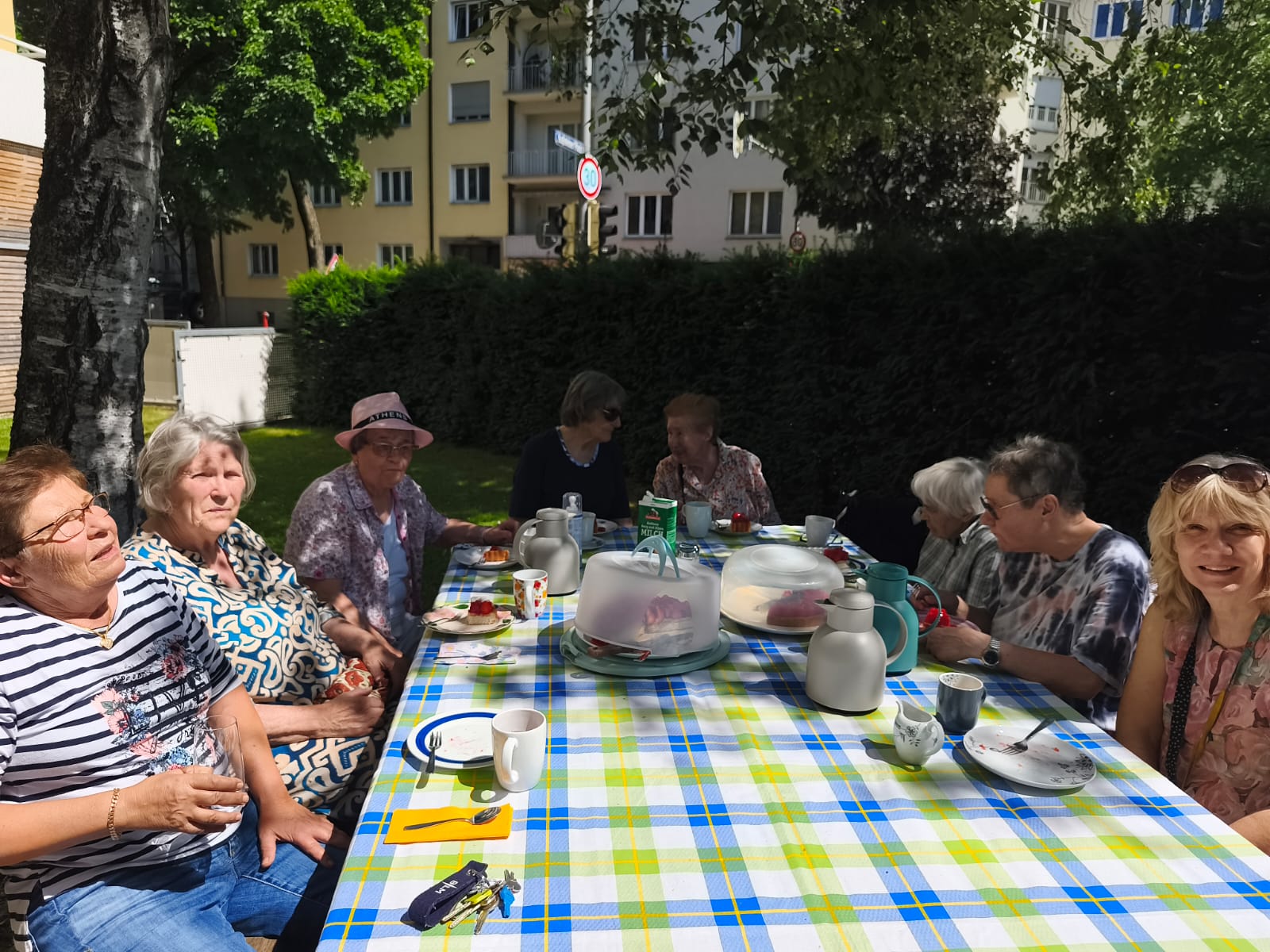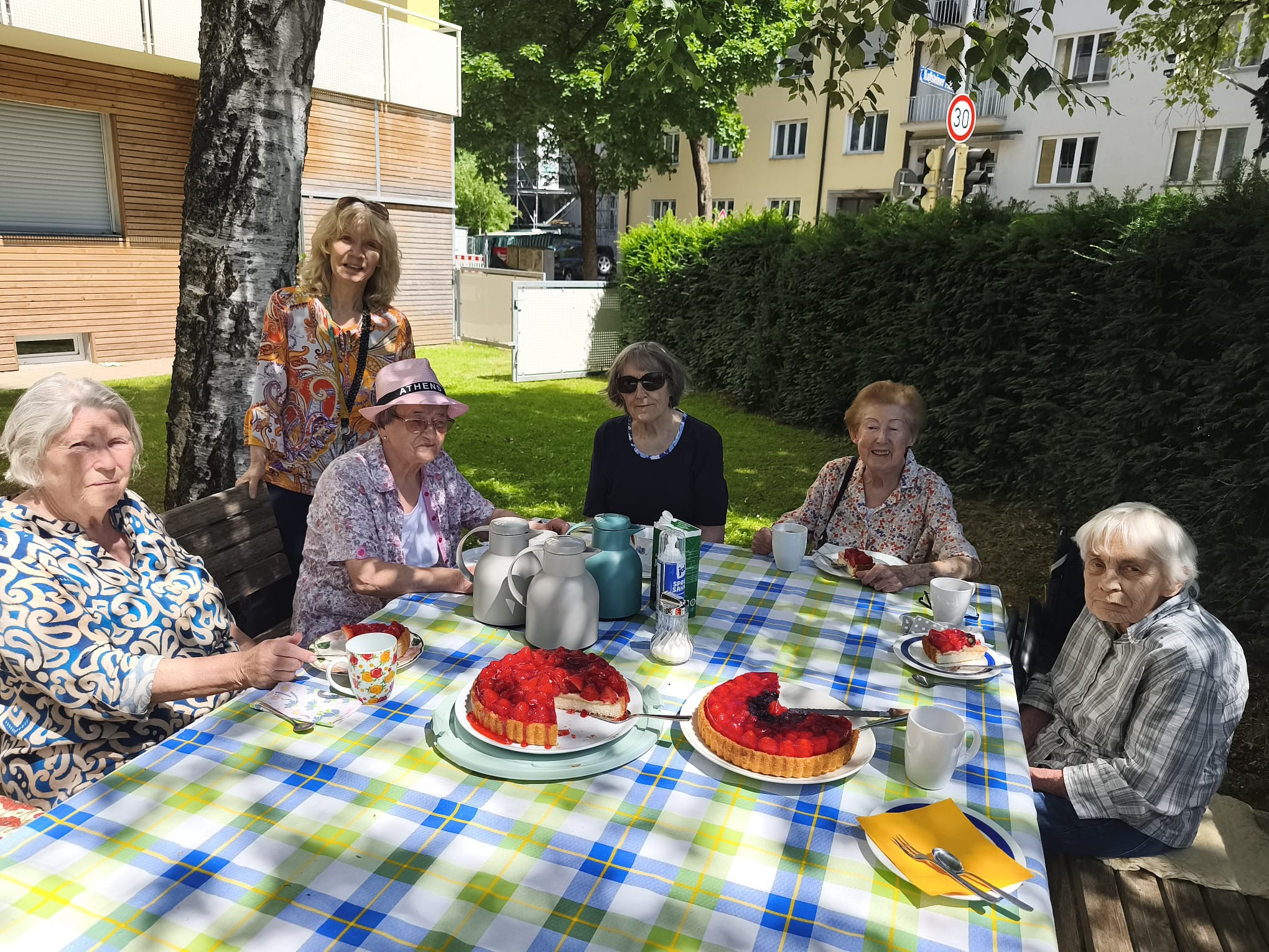 Ein warmer Junitag, zehn Frauen, ein blühender Garten – und der verführerische Duft von Kaffee und Beerenkuchen liegt in der Luft. Unter schattigen Bäumen im Garten des DEF-Appartementhauses für alleinstehende Frauen am Kufsteiner Platz 1 in München trafen sich Nachbarinnen des Hauses zum gemeinsamen Austausch über die Vielfalt heimischer Sommerbeeren, deren Nährwerte und kreativer Rezeptideen.