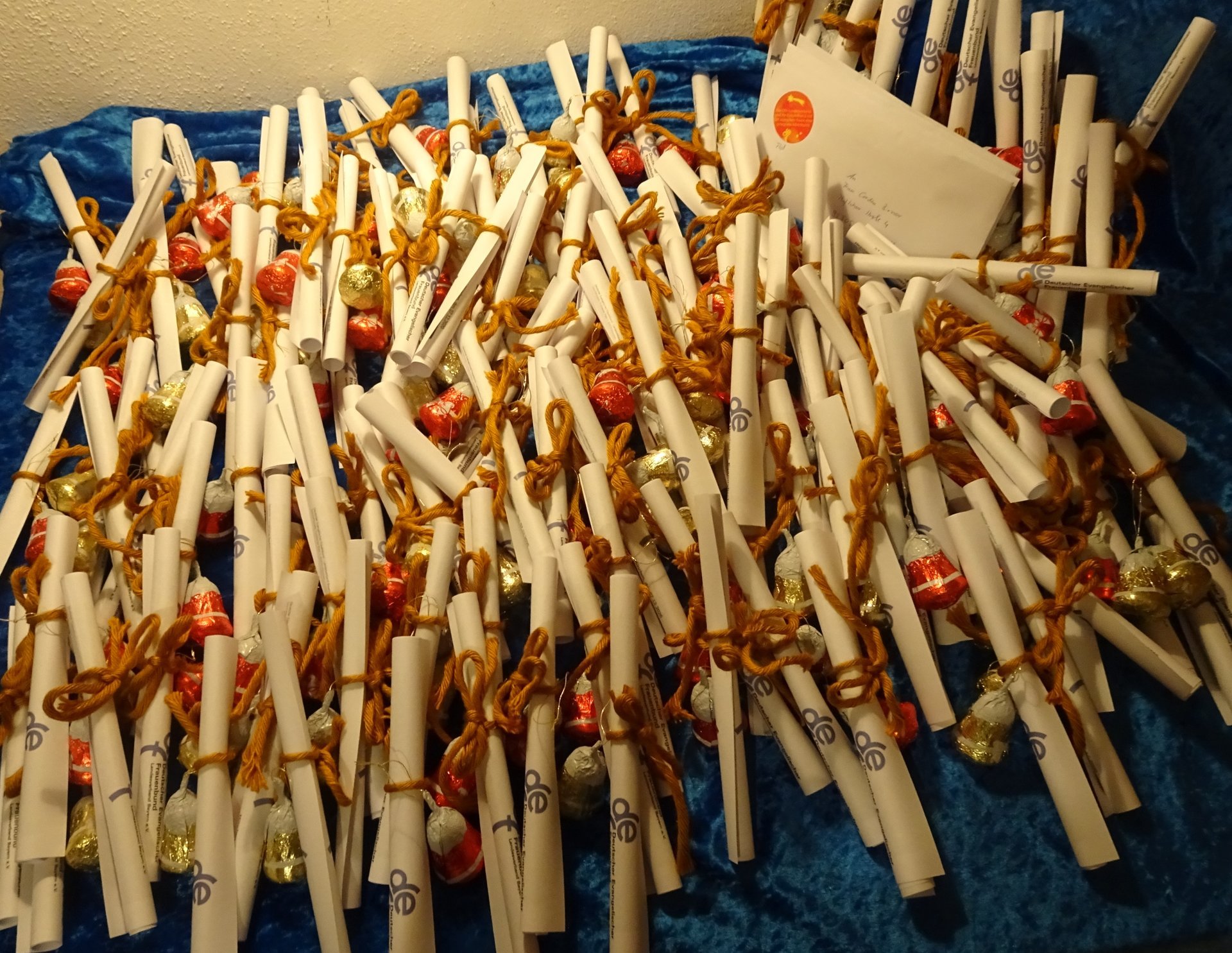 Floß - Adventliche Grüße der besonderen Art gehen den Mitgliedern des Ev. Frauenbunds in Floß nicht mit der Post zu, sondern die Briefe der Landesvorsitzenden Inge Gehlert zu jedem Adventssonntag werden Woche für Woche liebevoll gerollt und verschnürt und mit einer zum Inhalt passenden Aufmerksamkeit von Frauenbund-Frauen persönlich ausgetragen. So finden an jedem Adventswochenende gut 150 Grüße den Weg in die Briefkästen der Mitglieder.