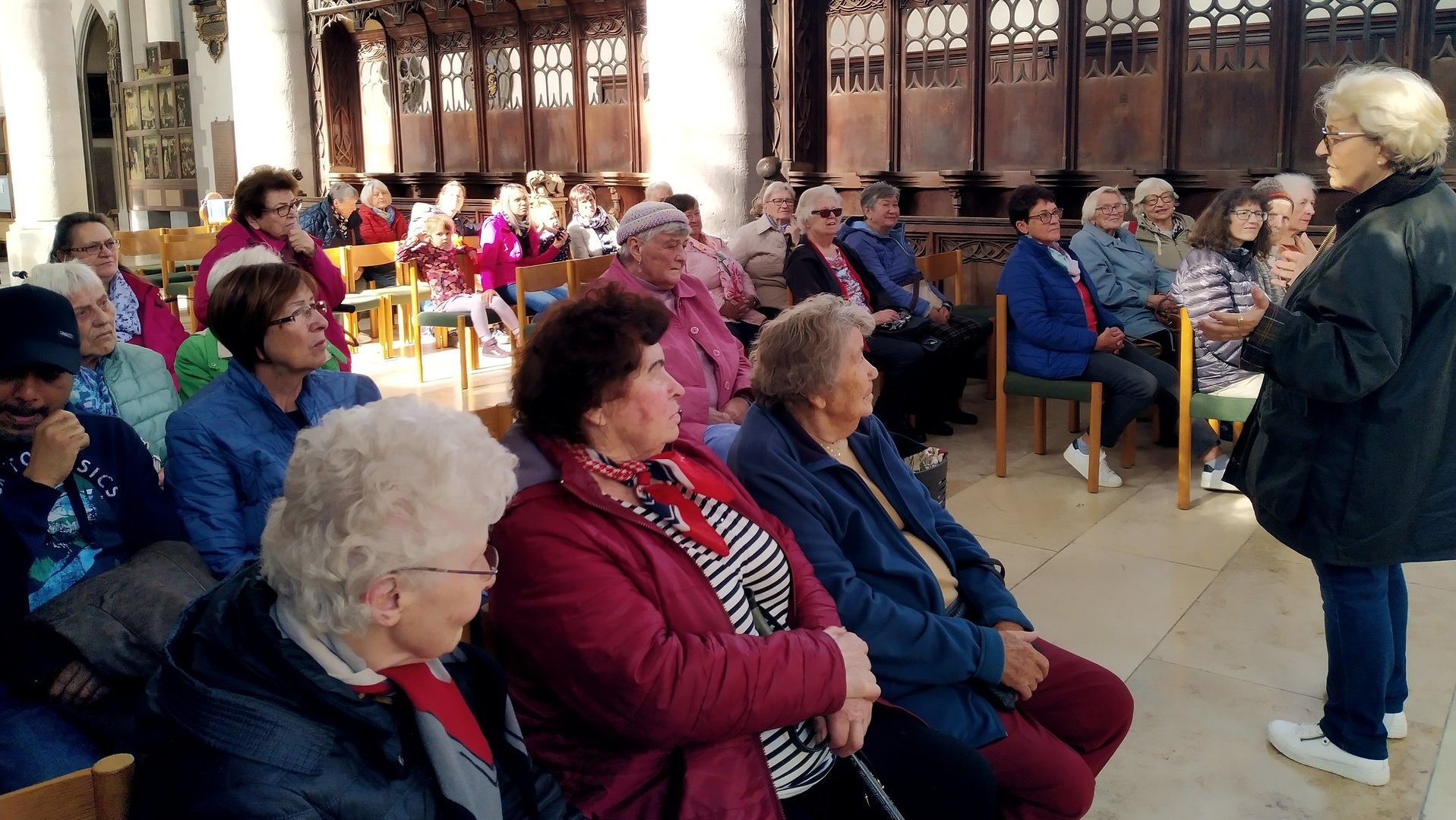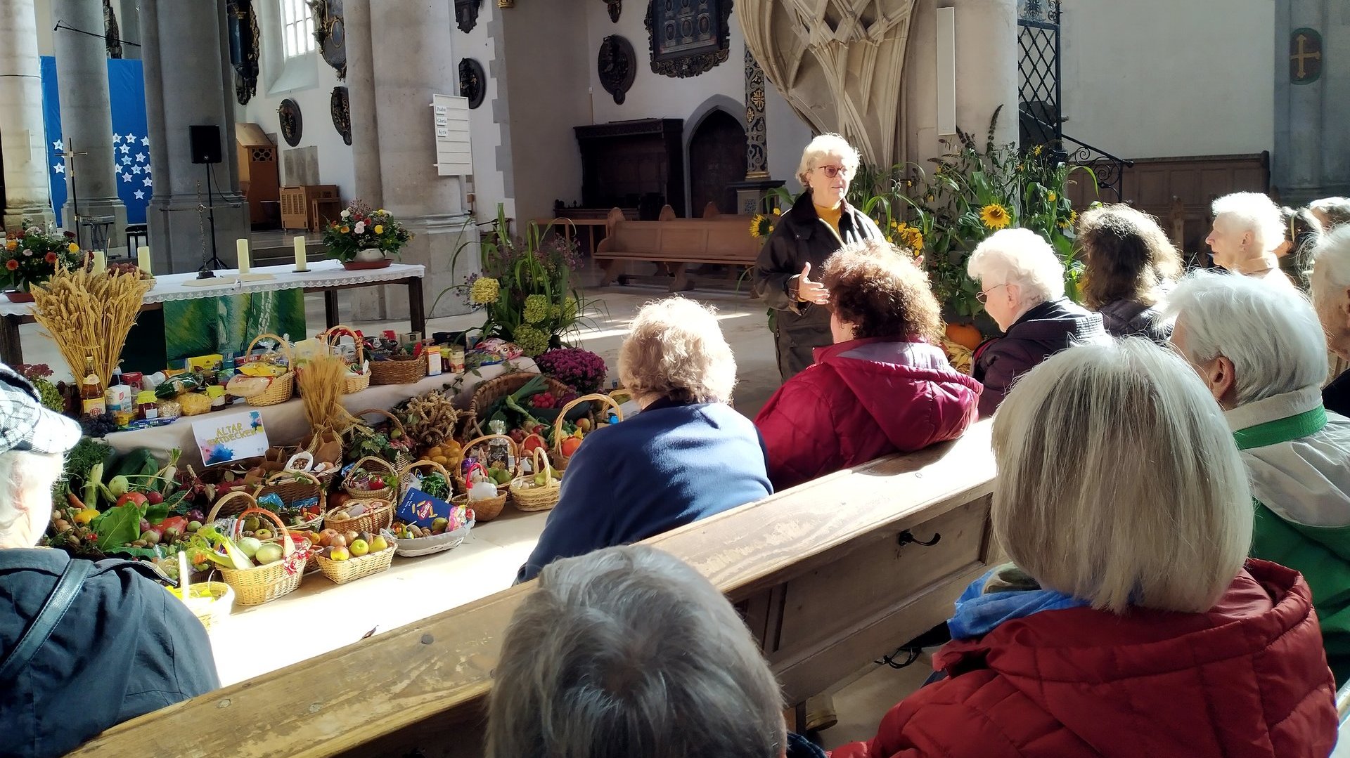 Der Deutsche Evangelische Frauenbund (DEF), Ortsverband Nördlingen besichtigte Anfang Oktober den schön mit Ernte-Dank-Gaben geschmückten Altar in der Nördlinger St. Georgskirche. Petra Kaiser erläuterte vor Ort den Sinn solch eines Ernte-Dank-Altars. Da die zahlreichen Engel in der Kirche die Anwesenden auch faszinierten, folgten noch Informationen über deren Bedeutung in der Bibel. Selbst die jungen Mitglieder des DEF waren interessiert und begeistert dabei.