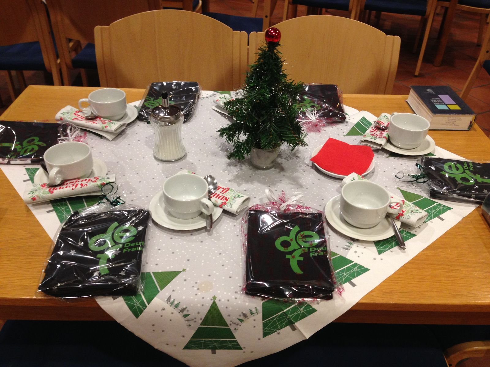 Wie in jedem Jahr fand ein reger Gedankenaustausch unter den Mitgliedern bei Kaffee/Tee und reicher Auswahl an Kuchen und Gebäck statt. Die wunderschöne Tischdekoration und das bereit gelegte DEF-Geschenk (Tasche) hob die Feststimmung, der Schein der brennenden Kerzen auf den Tischen erzeugte einen Widerschein in den Augen der Anwesenden. Dieser Widerstrahl symbolisiert die Hoffnung auf die weltverändernde Wirkung der Liebe und Zuwendung der Menschen untereinander, wenn sie denn geleistet wird. Darum lasst das Adventslicht niemals erlöschen. Es war eine niveauvolle Adventsfeier.