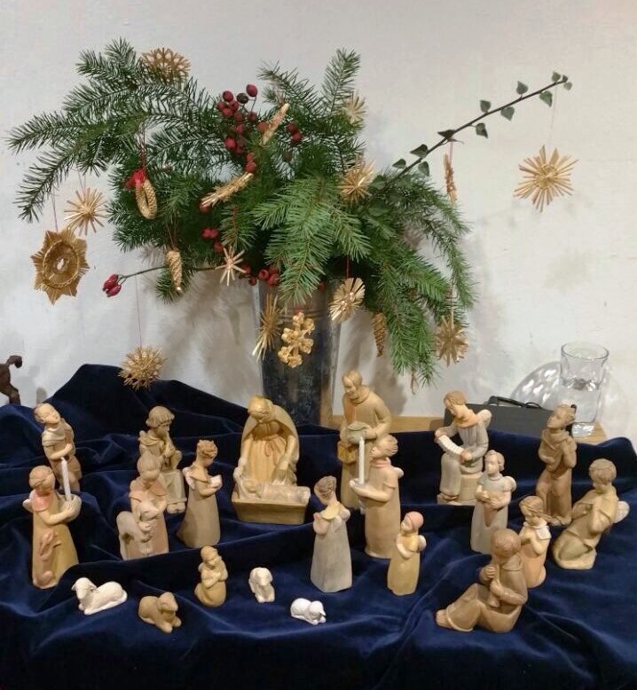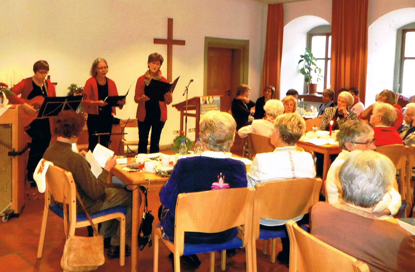 Adventliche Lieder und Musik (Gitarre Flöte, Klavier), vorgetragen von drei Frauenstimmen durch Susanne Schulz, Bobby Teschner und Gudrun Gross, führte wie ein Roter Faden durch das Programm. Das Mundartgedicht „Advent" von Wilhelm Staudacher, rezitierte seine Frau Alice, Gertrud Schneider las eine selbst erlebte Weihnachtsgeschichte und das fränkische Gedicht von Gertrud Schubart „Keine Plätzchen?" waren anrührende und nachdenkenswerte Einlagen aus dem Mitgliederkreis. Besonderen Beifall erhielt Lore Vogel für ihr in liebenswürdiger Weise skizziertes Lebensbild der Künstlerin Martha Hinckeldey, das sich aus persönlichen Begegnungen mit der Künstlerin speiste. Noch heute schmücken in vielen Familien Figuren der verstorbenen Künstlerin die Krippen in und um Rothenburg. Aus ihrem Nachlass waren Restbestände ihrer in Ton gefertigten Figuren käuflich zu erwerben.