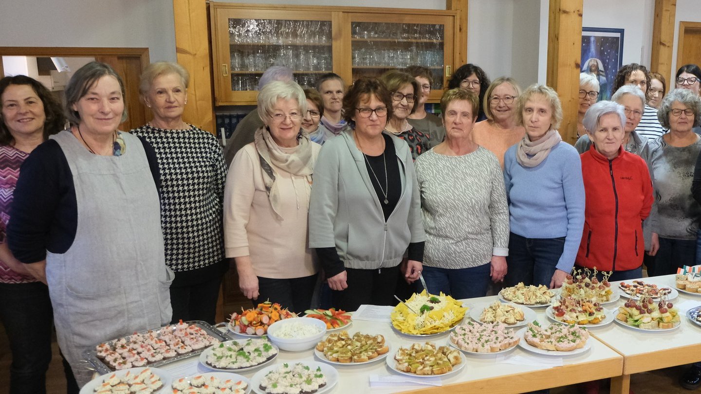 Am Faschingssamstag bereiteten 25 Frauen unter Anleitung von Erika Brandl ein großes Büfett mit leckerem Fingerfood zu. In kleinen Teams waren schnell Paprikaschiffchen, Flotte Käfer, Käsesnacks, Käse-Apfel-Taler, Kleine Teufel, Räucherlachs-Pikelets und vieles mehr zubereitet. Bei einer Tasse Kaffee und guten Tischgesprächen fand der Nachmittag einen schönen Ausklang – mit dem Wunsch nach einer Neuauflage im nächsten Jahr unter dem Thema „Schnelle Küche für Alt und Jung“.