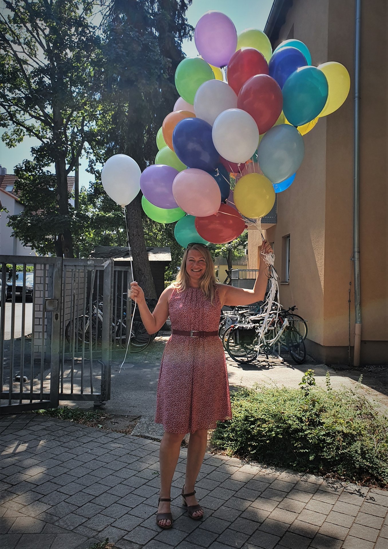 Fliegende Luftballons lassen träumen und hoffen. Sommerfest in den Wohnheimen Frühlingstraße Fürth.