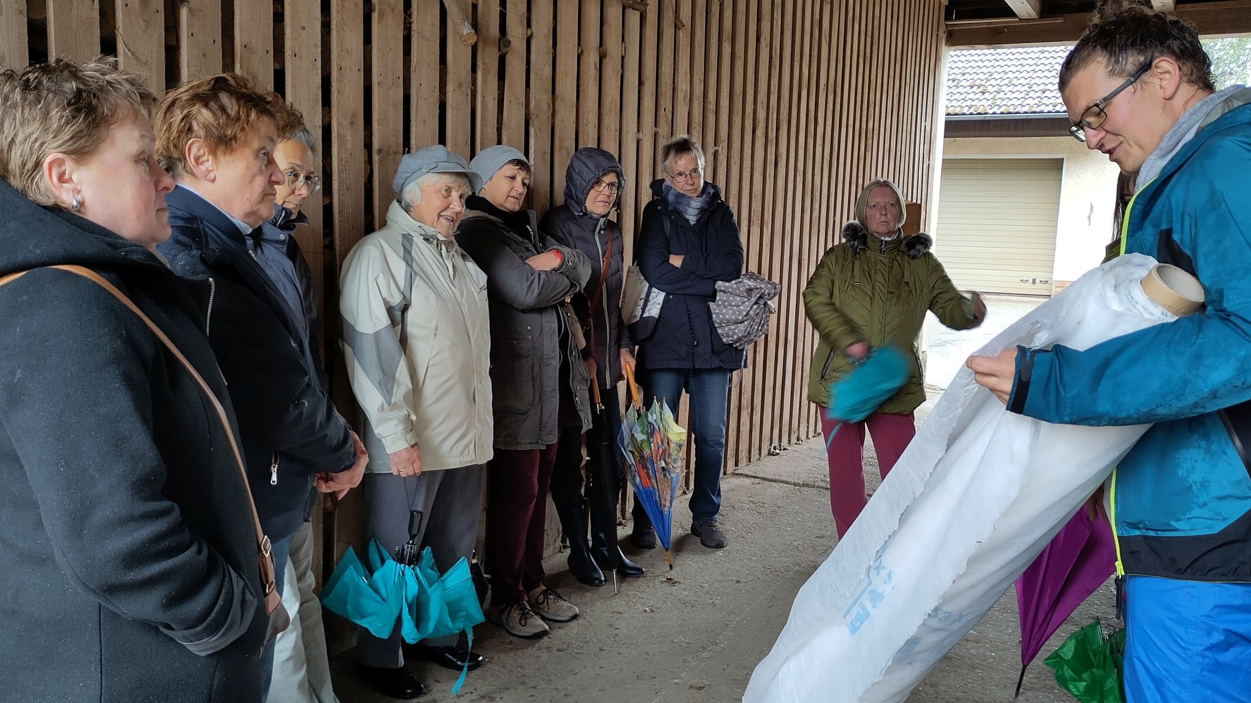 Zunächst erfolgte ein kurzer „theoretischer“ Teil, in dem Daniel Riebl über seinen beruflichen Werdegang und über seine Motivation, den Gemüseanbau zu starten, berichtete. Er zeigte den Zuhörerinnen, welche Geräte und Materialien er für seine Arbeit verwendet. Anschließend stellte er seinen kleinen Acker vor und die Frauen staunten, welche Vielfalt an Gemüse darauf wuchs. Interessiert wurde geraten, welche Pflanzen zu sehen waren.