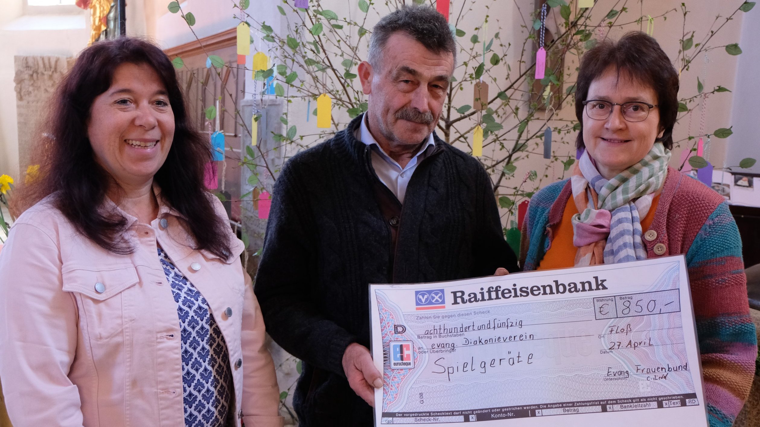 Ein weiterer Höhepunkt der Veranstaltung war die Übergabe einer großzügigen Spende in Höhe von 850 Euro an Manfred Venzl, dem Vorsitzenden des Diakonievereins (Bild: v.l.n.r.: Kerstin Sommermann, Manfred Venzl, Christa Riedel). Nach dem Anbau an die Kindertagesstätte, der im Herbst fertiggestellt werden soll, benötigt der Garten eine Neugestaltung. Dafür findet die Spende zum Wohle der Kinder in der Gemeinde eine gute Verwendung. Der Frauenbund zeigt damit einmal mehr seine Verbundenheit zur örtlichen Kirche und Diakonie, die er auch in Zukunft gerne unterstützen wird.