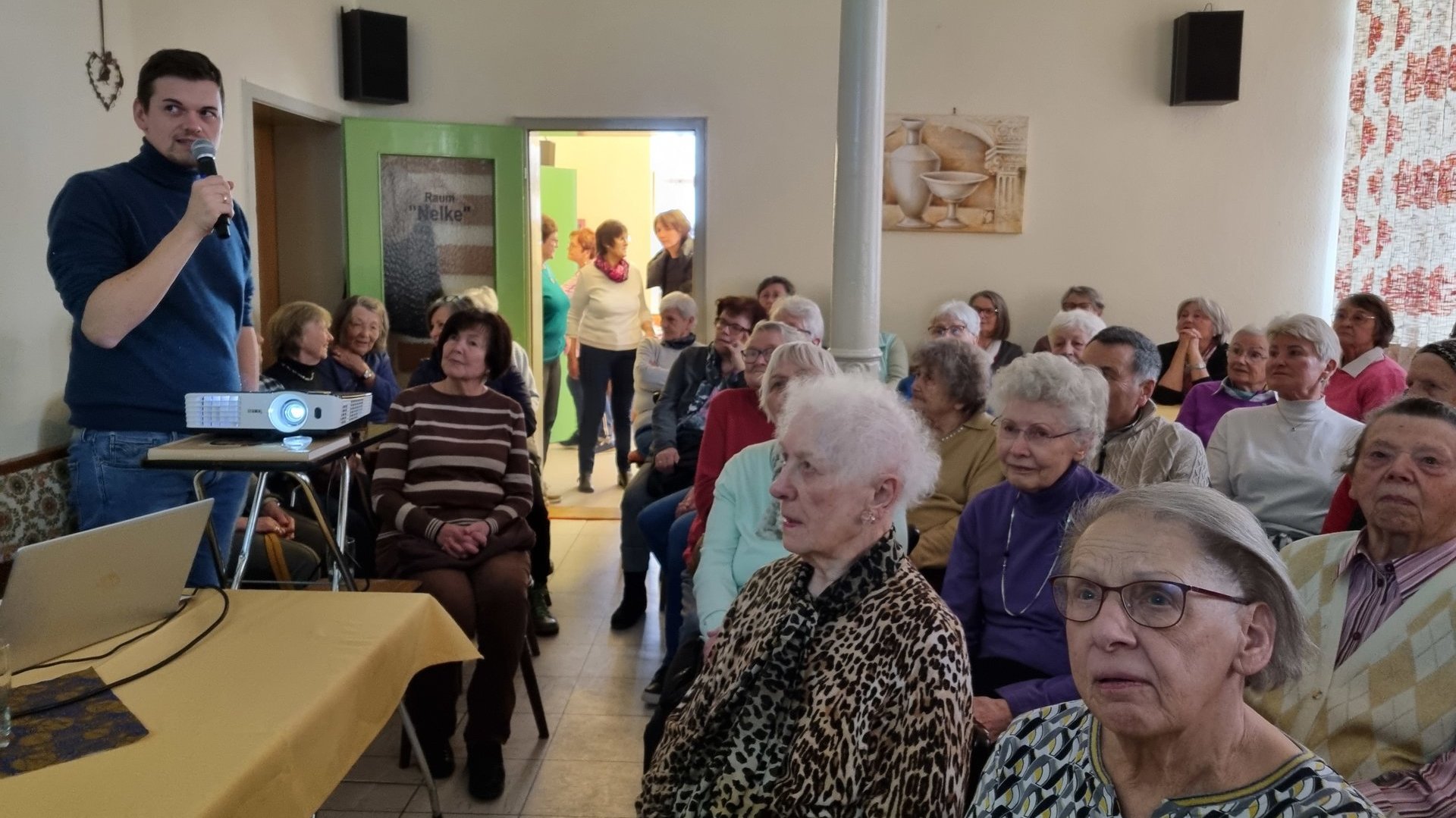 Im gut besuchten Seniorentreff zeigte Archivar Johann Moosdiele-Hitzler diesen Film und erläuterte parallel dessen Inhalt. Nach der Vorführung genossen die Teilnehmerinnen bei Kaffee und Kuchen angeregte Gespräche über den Film und die darin gezeigten historischen Aufnahmen der Stadt.