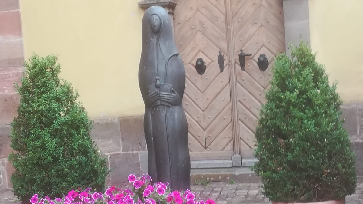 Walburgis-Statue vor der Kirche in Wolframs-Eschenbach