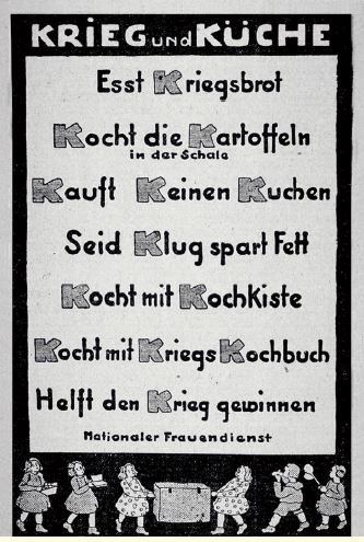 Rezepte zur Resteverwertung wurden überall verbreitet und die Kochkiste - samt Anleitung zur Herstellung - stand hoch im Kurs. Eine kleine Broschüre ‚Ernährung und Teuerung‘, herausgegeben vom Ministerium des Innern im Früh jahr 1916, erschließt die Situation im Kapitel ‚Ernährung im Kriege‘ recht anschaulich.