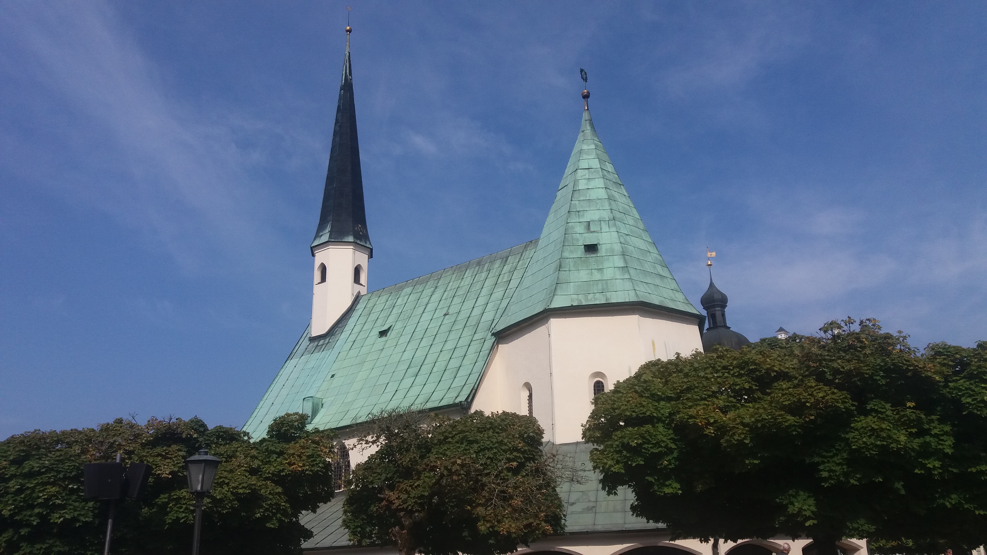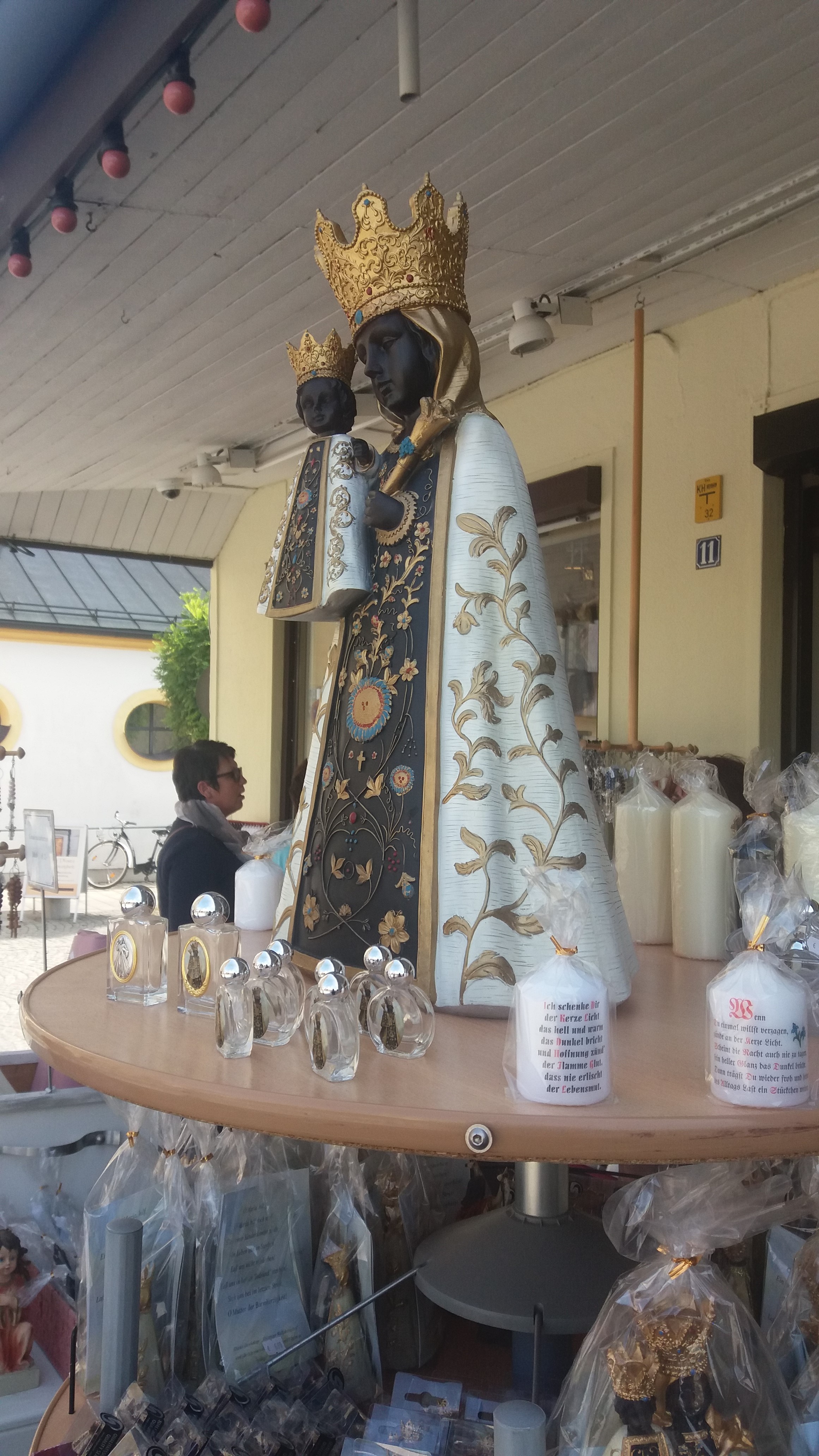 Nicht weit zu laufen ist es vom Bahnhof zum Kapellplatz, der sich weit auftut. Und angesichts der großen Stadtpfarrkirche mit ihren hochaufragenden Spitztürmen wirkt sie klein, die Gnadenkapelle. Dennoch beherbergt sie eines der größten Heiligtümer des Landes, ja Europas. Die Schwarze Madonna gehört in einen gesamteuropäischen Zusammenhang, sie hat ihre Schwestern in Loreto, in Fatima und in Tschenstochau.