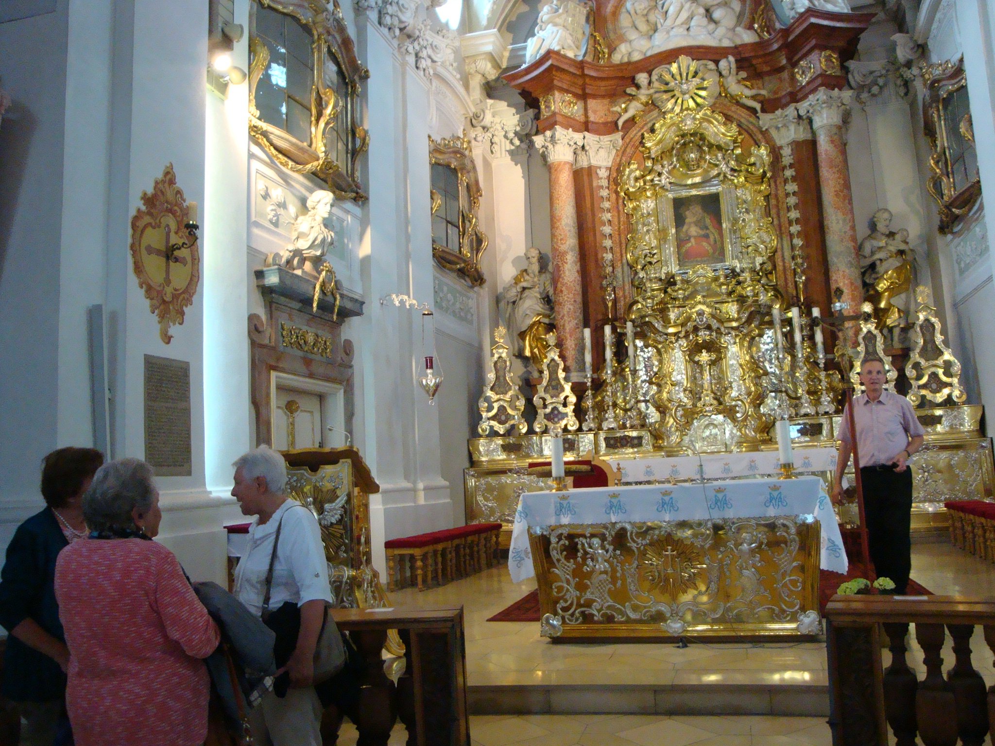 Wie es seit langem Tradition ist, machte sich der OV Altdorf auch in diesem Jahr zu einem sommerlichen Ausflug auf den Weg. Diesmal war das nicht weit entfernte Amberg unser Ziel. Mit dem Bus war rasch der Mariahilfberg mit der berühmten Wallfahrtskirche erreicht, oberhalb von Amberg gelegen. Imponierend die Größe und Helligkeit der reich ausgestatteten Barockkirche, die nach Plänen von Wolfgang Dientzenhofer entstanden ist. Die Deckenfresken von Cosmas Damian Asam stellen die Geschichte der Wallfahrt dar. Das Herzstück der Kirche ist das Gnadenbild am Hauptaltar, eine Kopie einer Madonnendarstellung von Lukas Cranach.