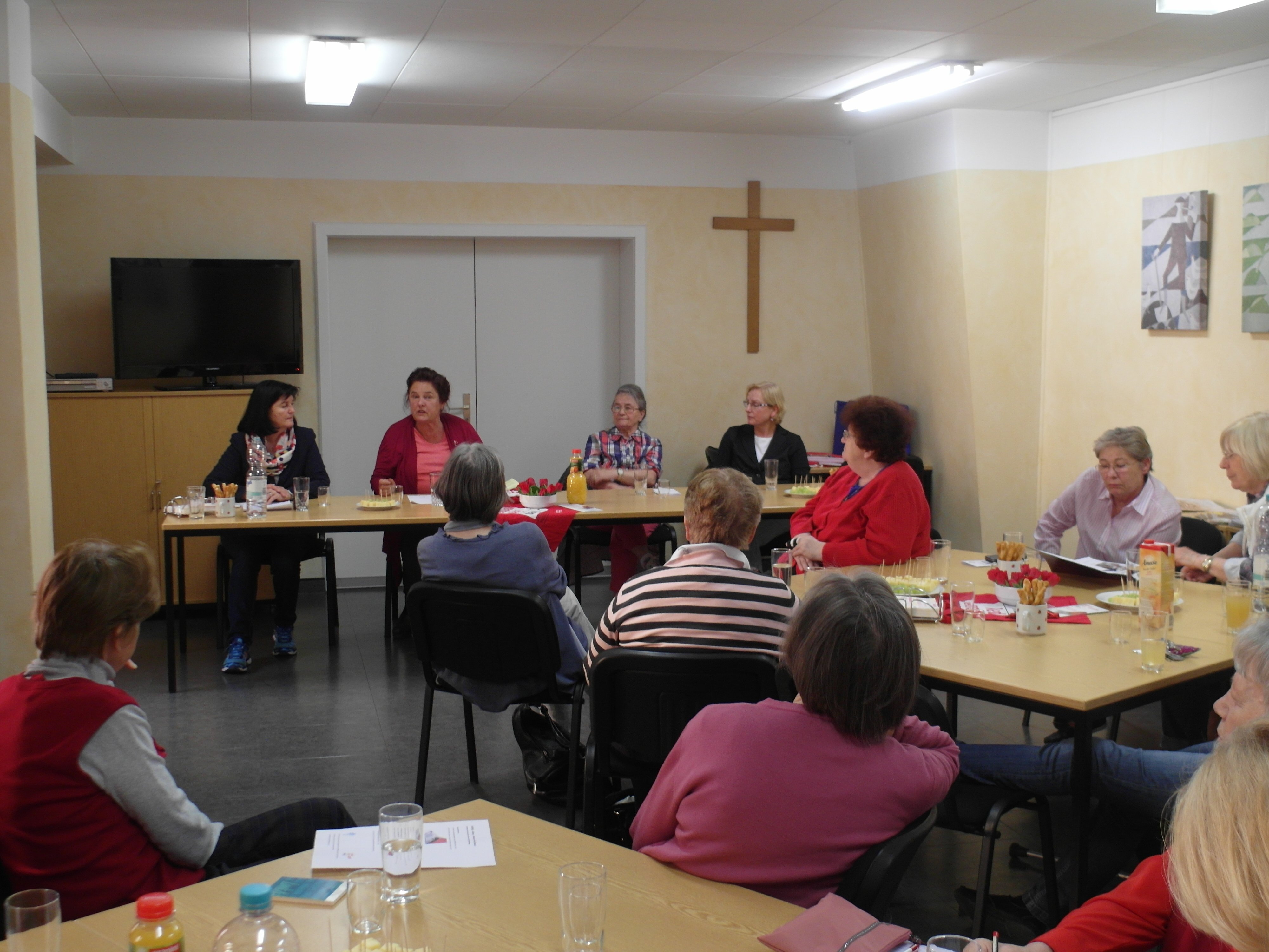 Im Rahmen des Münchner Bündnisses Equal Pay Day lud der Deutsche Evangelische Frauenbund in seinen Saal im Haus am Kufsteiner Platz in München. Unter der Moderation von Dietlinde Kunad, Bundes- und Landesvorsitzende des DEF, diskutierten Expertinnen der Hauswirtschaft und Krankenpflege über ihre Berufe auf dem Podium "Vielfältig - wichtig - vielfach unterschätzt".