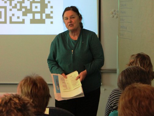 QR-Codes waren den meisten von uns noch ein Buch mit sieben Siegeln, aber wir waren alle willig, uns zu informieren, erwarteten neugierig die Praxiserprobung und hatten teilweise bereits unsere internetfähigen eigenen Geräte mitgebracht.