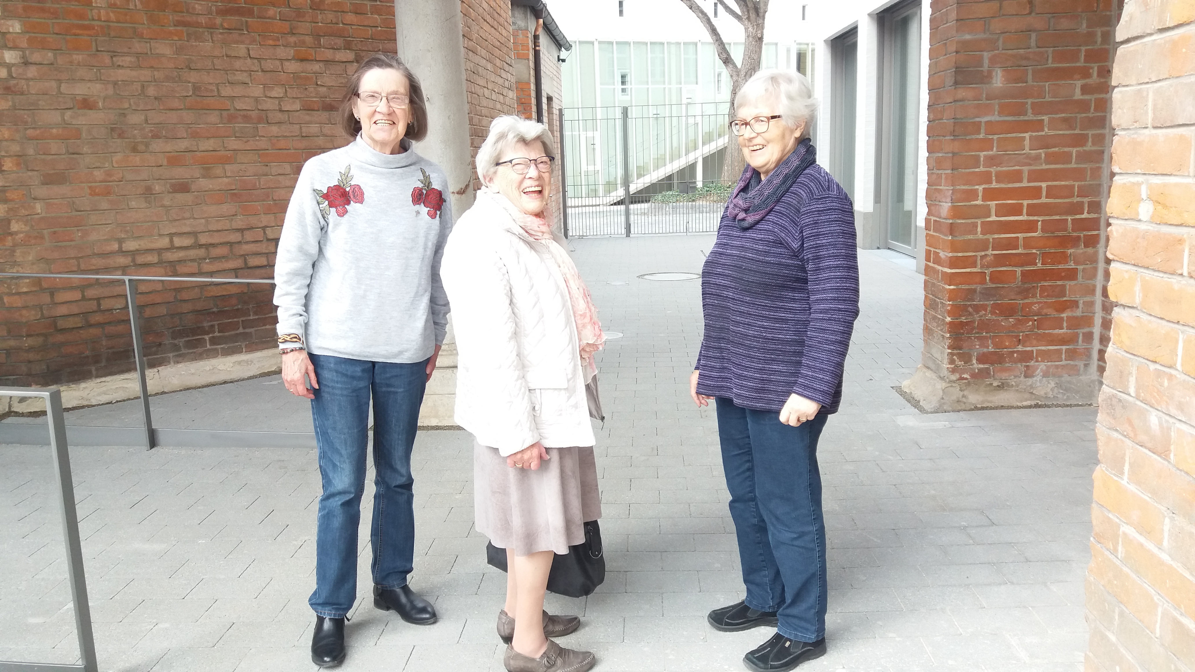 Bild: DEF, Eichstätter DEF-Frauen zwischen Kirchengebäude und neuem Gemeindezentrum.
