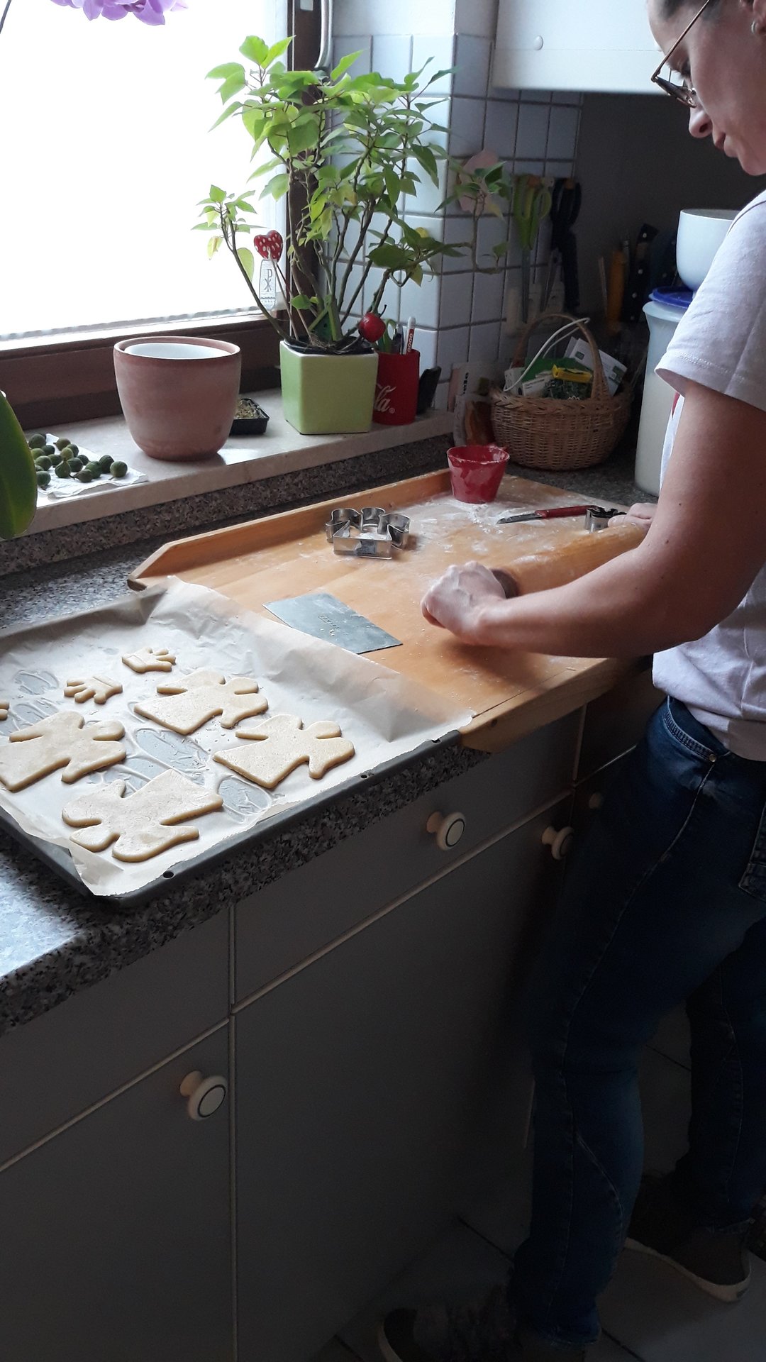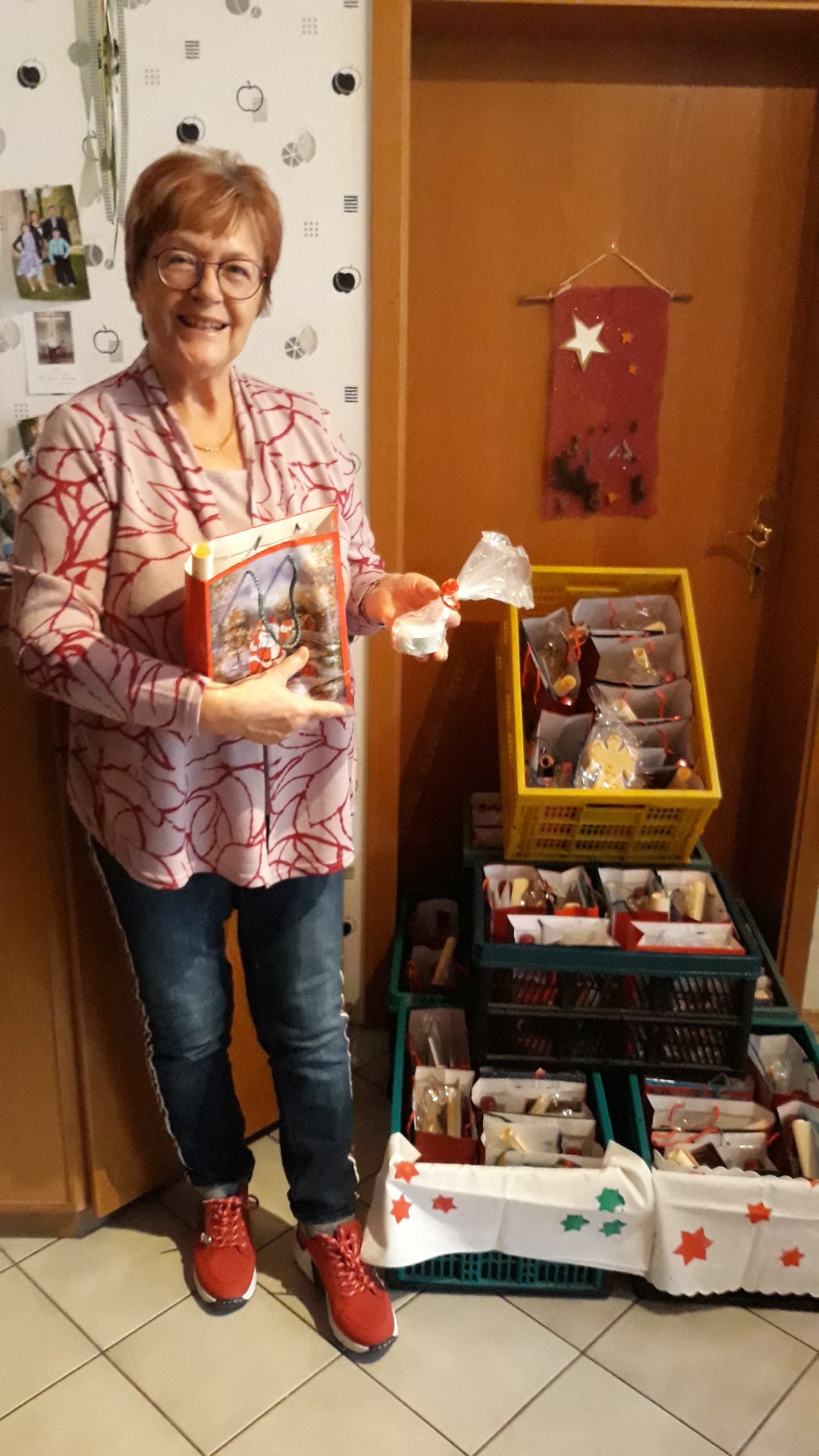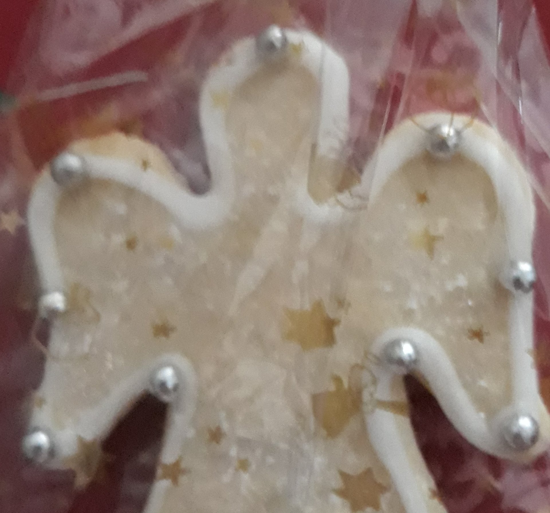 Also haben die Nördlinger Weihnachtsengel eingekauft, gebacken und Geschenktüten gefüllt. In der Weihnachtsbäckerei entstanden große weiße Engel, das Gewand und die Flügel mit einem Rand aus Zuckerguss und mit silbernen Liebesperlen verziert und schließlich mit Puderzucker überschneit. Jeder Engel steckte schön hygienisch in einer Cellophantüte mit Sternchenmuster.