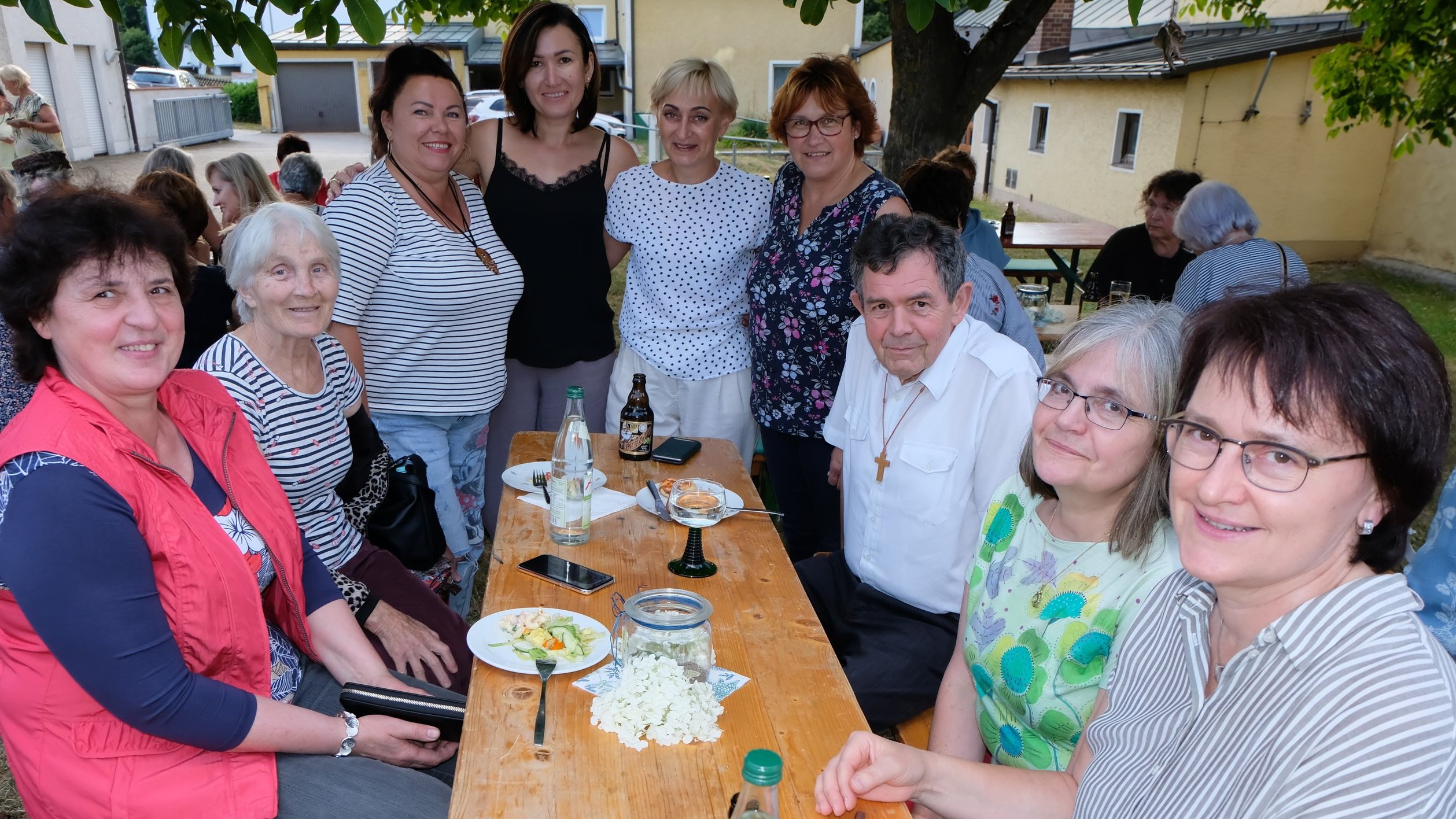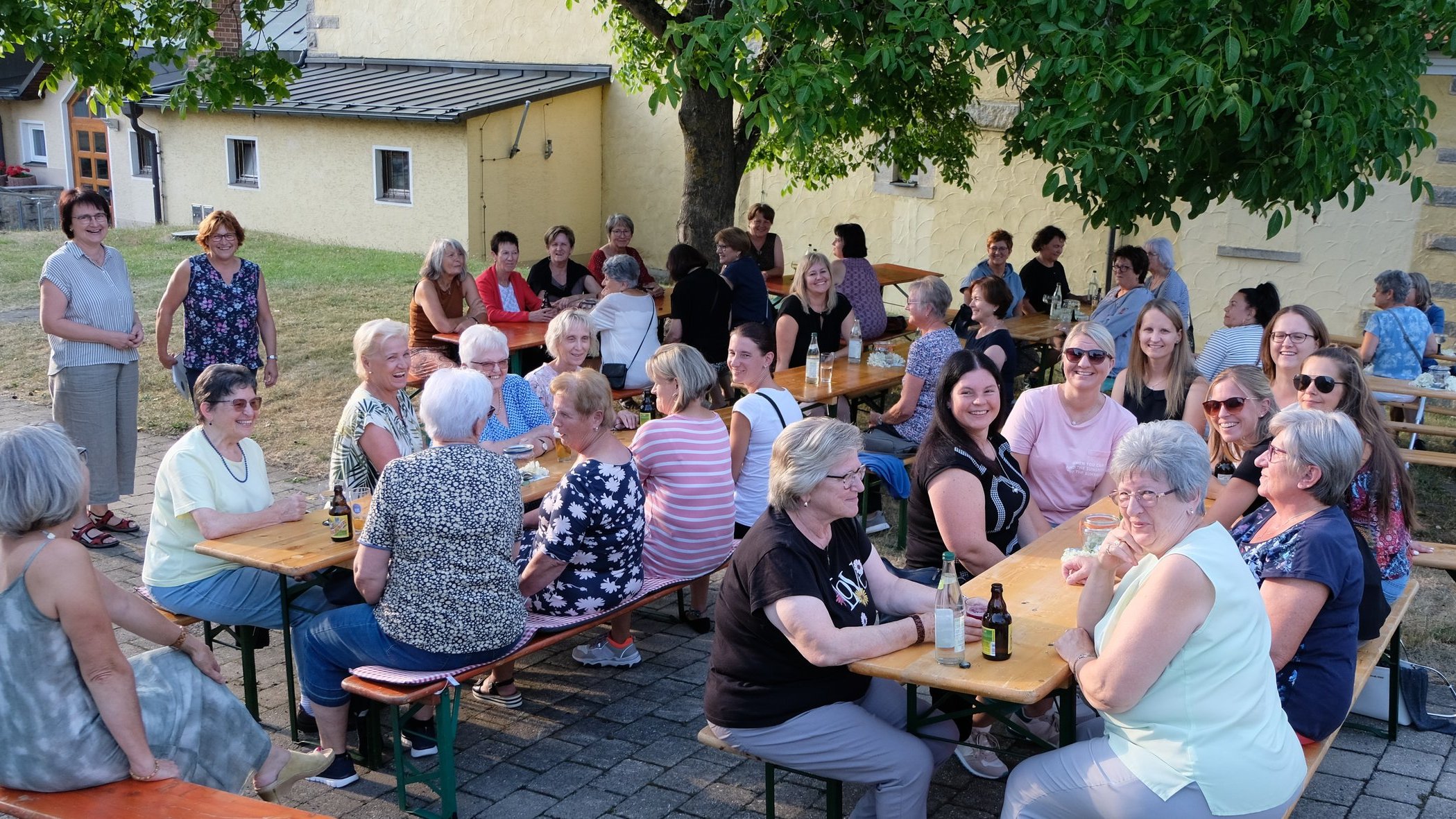 Nach zwei Jahren Pandemie bedingter Sommerpause feierten der katholische und der evangelische Frauenbund in Floß endlich wieder ihr ökumenisches Sommerfest. Die Freude darüber war groß. Besonders begrüßten die beiden Vorsitzenden Frauen aus der Ukraine, die hier in Floß bei verschiedenen Familien Zuflucht gefunden haben. Dank der modernen Medien – Smartphone-Apps mit Übersetzungsfunktion – war auch ein kleiner Austausch zu einem ersten Kennenlernen möglich. Ein großes Dankeschön und ein großes Lob erging an die ukrainischen Frauen. Sie hatten das umfangreiche Büfett mit leckerem süßen Gebäck erweitert. Es war ein wunderschöner Abend.