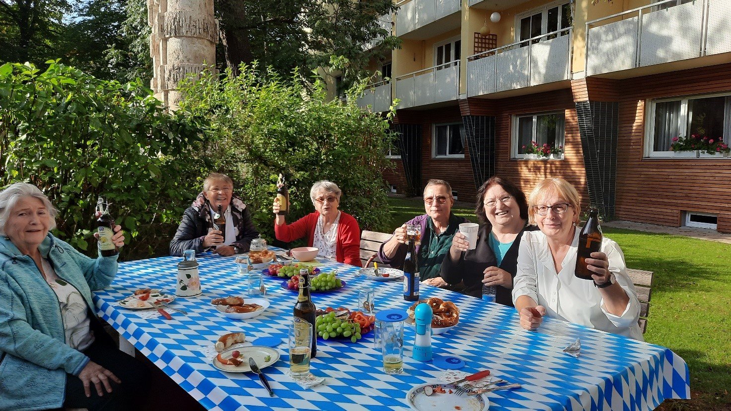 Die Bewohnerinnen des Hauses am Kufsteiner Platz feiern deshalb gut gelaunt ein Oktoberfest mit bayerischer Brotzeit im Garten.