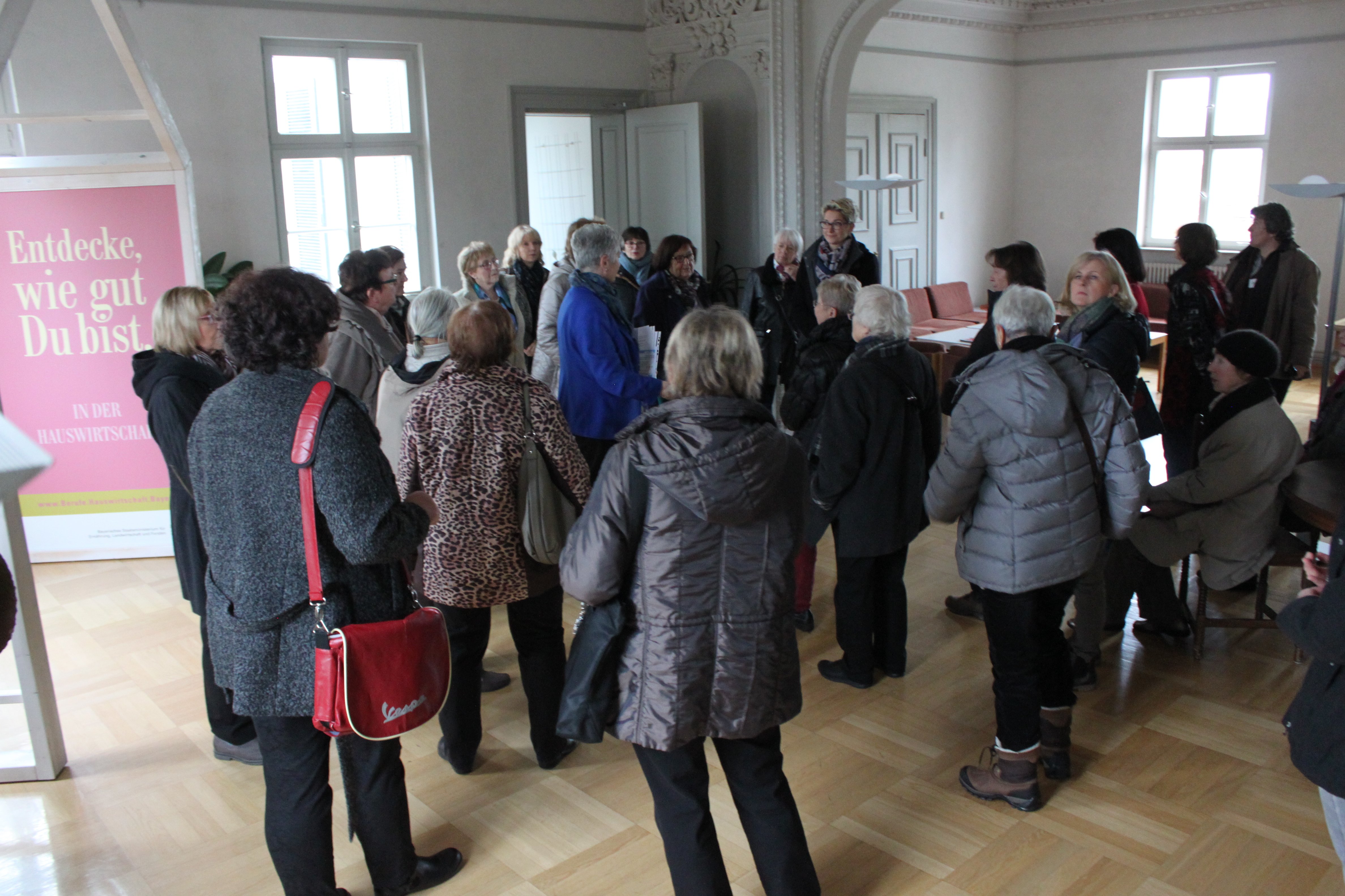 In diesem Herbst war Triesdorf der Ort der AEH-Mitgliederversammlung, und im mittig in der Anlage gelegenen Infozentrum lässt sich gut tagen. Der Vormittag war einer umfangreichen Besichtigung des Zentrumsgeländes und diverser Einrichtungen gewidmet. Erst ging es hinüber zum Weißen Schloss, dem Zentrum der Hauswirtschaft. Der Weg trepphoch in den Weißen Saal war vielen AEH-Mitgliedern als Helferinnen oder Besucherinnen am Johannitag schon vertraut, denn in dieser schönen Umgebung und unter einer massiven Stuckdecke findet der AEH-Informationsstand statt. In die Schulungsräume konnte ein Blick geworfen werden, in einem mit Stilmöbeln ausgestatteten Raum wurde gepflegtes Mobiliar und ein tipp topp geputzter Kronleuchter bewundert. Vor dem Fenster öffnete sich der Blick in den berühmten Apfelgarten, das Pomoretum (s. a. def aktuell 2/2016), in dem nicht nur 1000, sondern bereits 1200 Apfelsorten gehegt werden. So wird echte Vielfalt und ein lebendiger kultureller Schatz bewahrt.