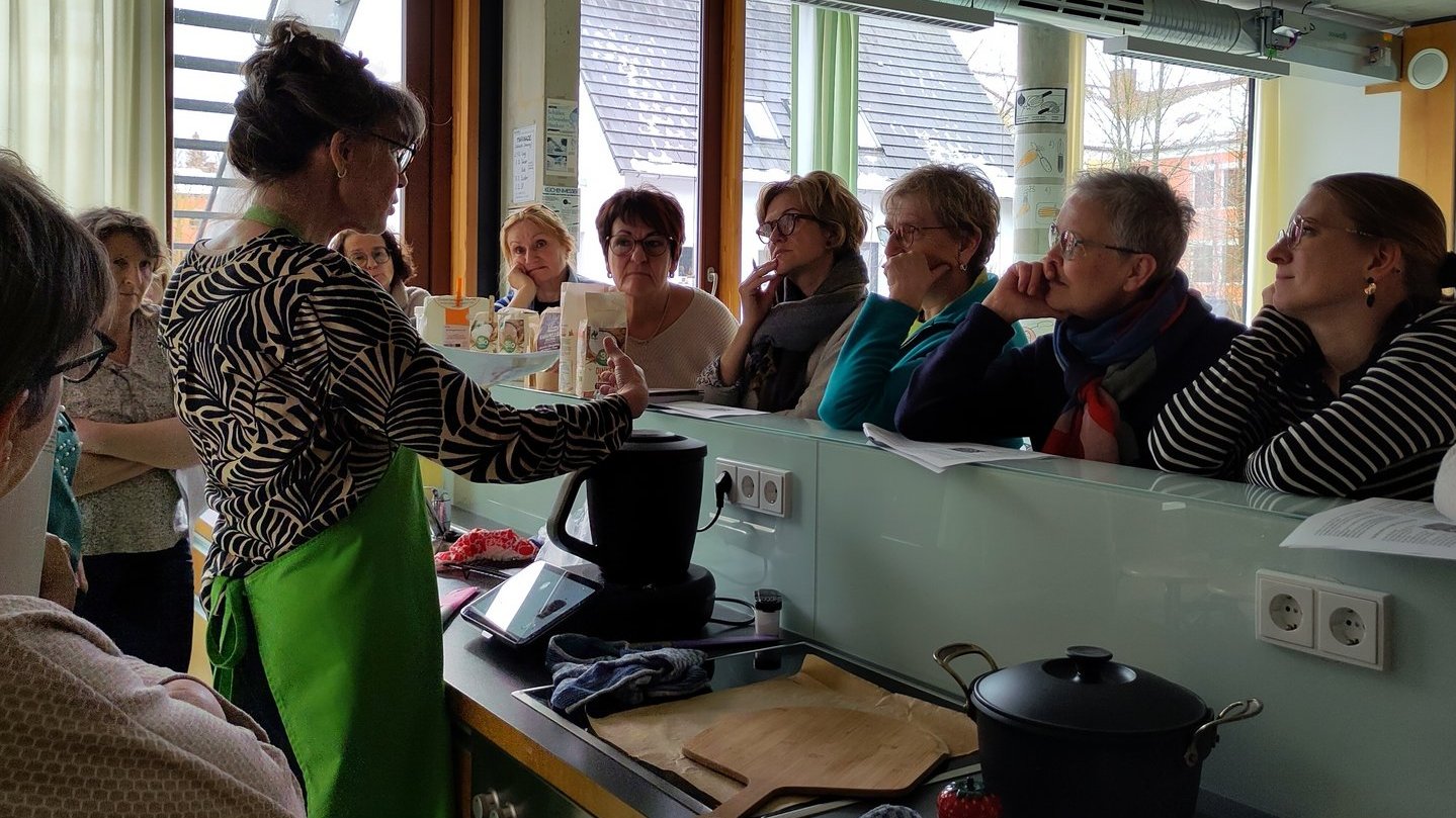 Kerstin Birkner, die Referentin des Kurses, kam in der Zeit der Corona-Pandemie zum Brotbacken. Seitdem hat sie sich stets weitergebildet und zahlreiche Erfahrungen gesammelt, die sie den interessierten Frauen weitergeben wollte. Stichpunkte wie Gesundheit, Achtsamkeit, Nachhaltigkeit, aber auch Entspannung sind Gründe, das eigene Brot selbst zu backen. An dem Nachmittag zeigte Kerstin Birkner wie man mit natürlichen Triebmitteln, wie Roggensauerteig, Lievito Madre oder Hefewasser eigenes und bekömmliches Brot und Brötchen selber backen kann.