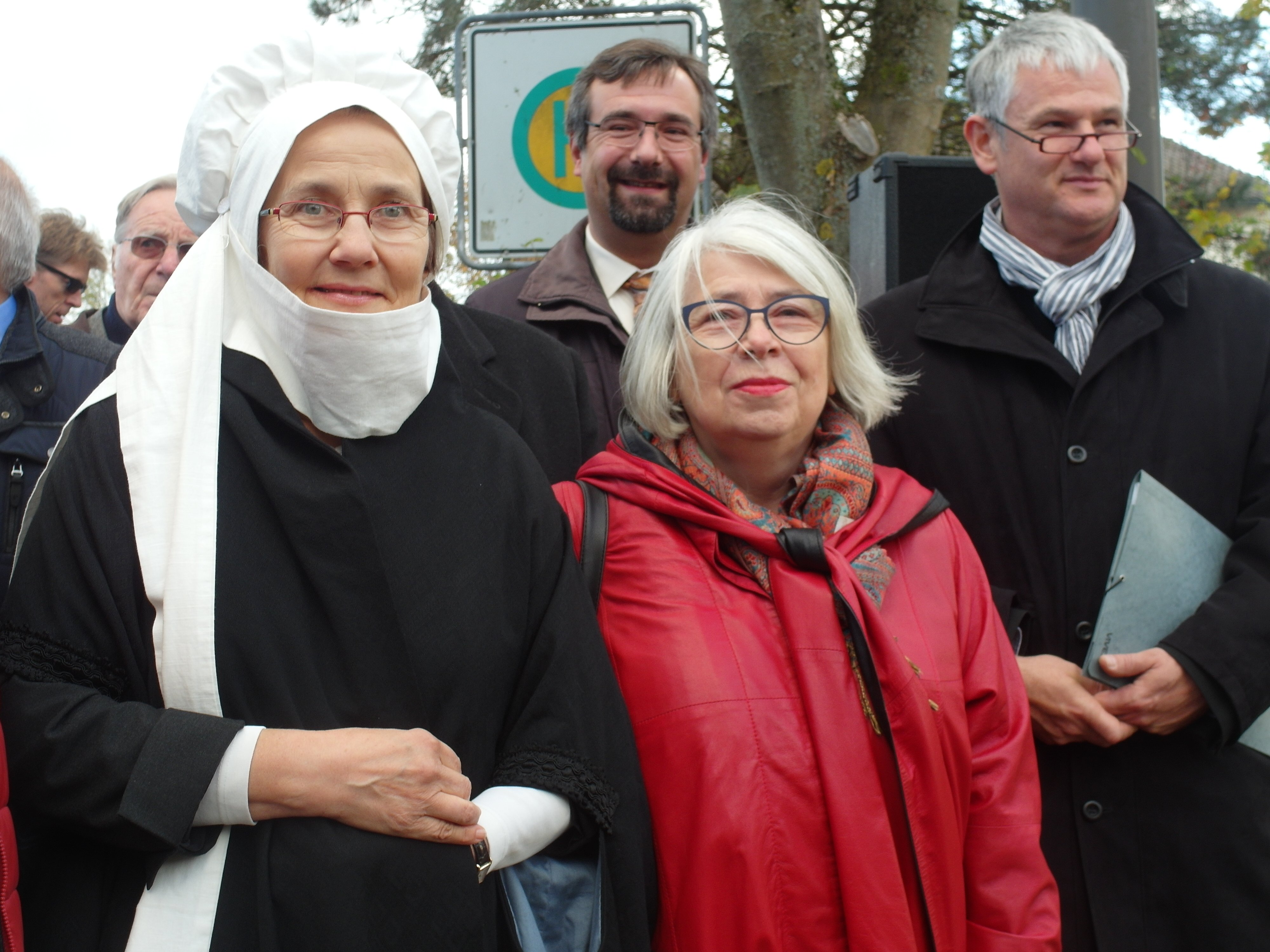 Das Argula von Grumbach-Denkmal in Lenting und seine Enthüllung war eine gemeinschaftliche Tat: Die evangelische und die katholische wie die politische Gemeinde, der ganze Ort Lenting, Alt und Jung, Stifterinnen und Stifter, Honoratioren, Gäste aus nah und fern, haben zusammengewirkt. Nach einem Ökumenischen Gottesdienst in St. Nikolaus zogen alle Besucherinnen und Besucher gemeinsam durch den Ort hinauf zum Standort. Wenigen Worten am Denkmal folgte die Enthüllung durch den Künstler, assistiert von Frau Argula selbst. Diese wurde im historischen Gewand im langärmeligen Mantel und mit weißer Haube mit Gebende verkörpert von Dorothee Burkhardt, der Vorsitzenden des Beirats der Argula von Grumbach Stiftung der Evangelischen Landeskirche.