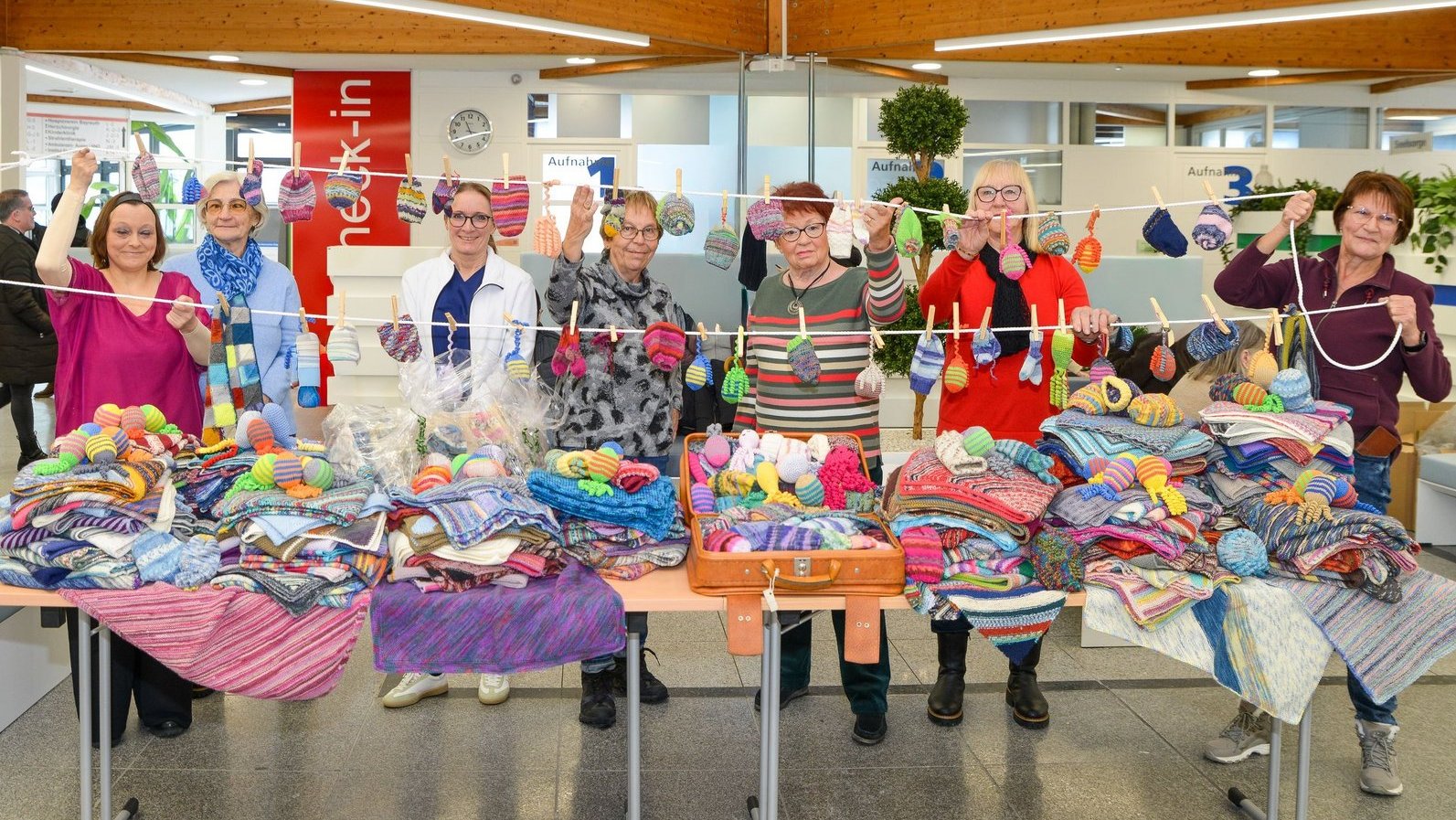 Bedingt durch das Schneechaos und Stillstand des ÖPNV konnten am 29. Januar 2026 nur sechs Frauen die Werke der Gruppe an Schwester Claudia Hutzler, stellvertretende Leiterin der Station 44, übergeben. Innerhalb der letzten 12 Monate wurden 95 Garnituren (bestehend aus Mütze, Socken und Handschuhen), 305 Socken-Mützen-Kombinationen, 184 Tintenfische sowie 152 Decken im Wert von 4350 Euro (reiner Materialwert) für die Frühchen hergestellt.