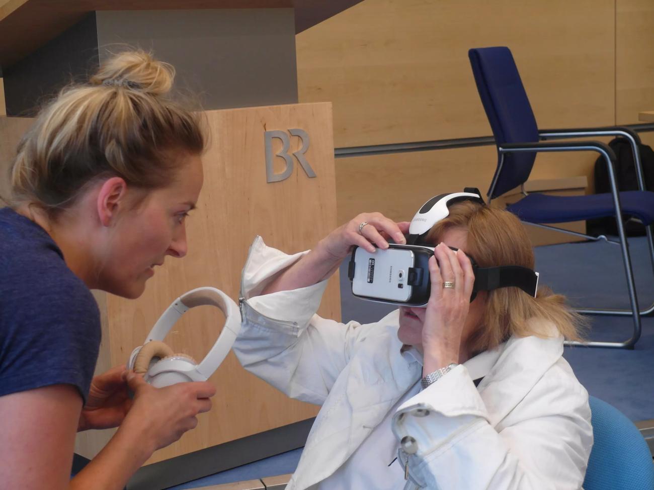 Ganz neue Wege beschreitet schließlich die Redaktion BR Next. Thomas Sessner und eine Mitarbeiterin machten die Frauen mit den neuen Projekten wie 360 Grad bekannt. Für diese Form des Aufnehmens und Sehens im Rundumblick müssen ganz neue Formen des Erzählens erst gefunden werden. Man müsse die neuen Möglichkeiten erst einmal verstehen. Es gehe um nichts weniger als eine neue Sprache, die dafür entwickelt werden müsse. Einen kleinen Blick in diese Zukunft konnten Interessierte nicht nur auf der Großleinwand oder auf einem herumgereichten Handy tun, sondern auch mit Hilfe einer speziellen Raumsichtbrille, in die ein Handy eingelegt werden kann. Aber die Dinge kommen ins Rollen, und wenn erst einmal der Funke überspringt...