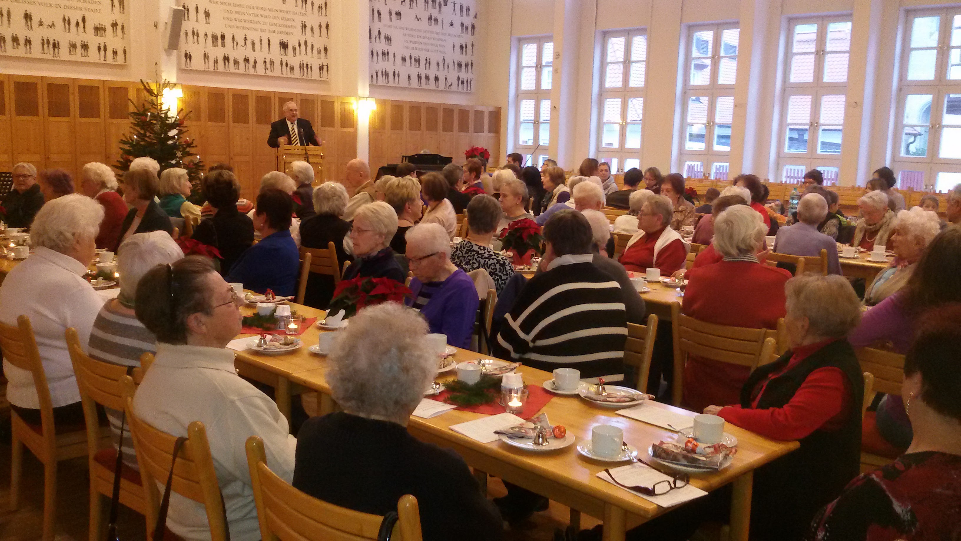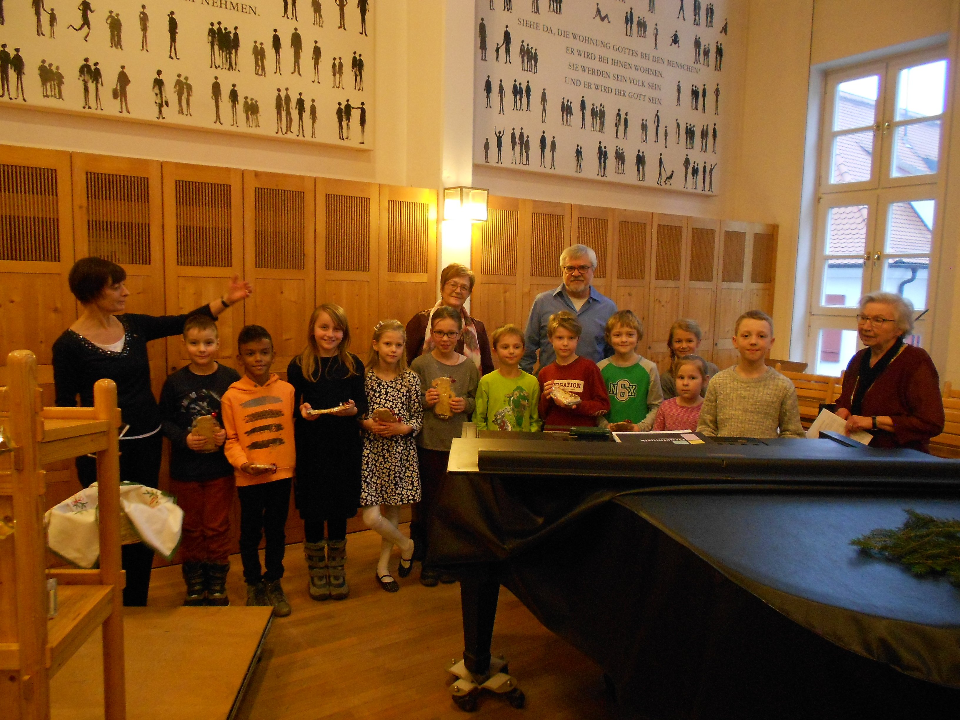 „Kling Glöckchen, klingelingeling“ – mit diesem Lied eröffneten die Kinder der Orff-Gruppe von Kurt Moll den Nachmittag. Ihr fröhliches und mitreißendes Spielen und Singen sorgte gleich zu Beginn für gute Stimmung. Nach den Grußworten von Herrn Oberbürgermeister Faul und Herrn Irrgang, dem 1. Vors. des Seniorenbeirats, übernahm dankenswerterweise Herr Dekan i.R. Hans Issler den Andachtsteil. Die Geschichte von der kleinen Glocke, die erst keiner brauchen kann, die aber schließlich beim Krippenspiel doch noch ihren Einsatz findet, regte zum Nachdenken an. Nach der Kaffeepause durften schließlich alle noch fest mitsingen. Frau Issler begleitete die Advents- und Weihnachtslieder am Flügel.