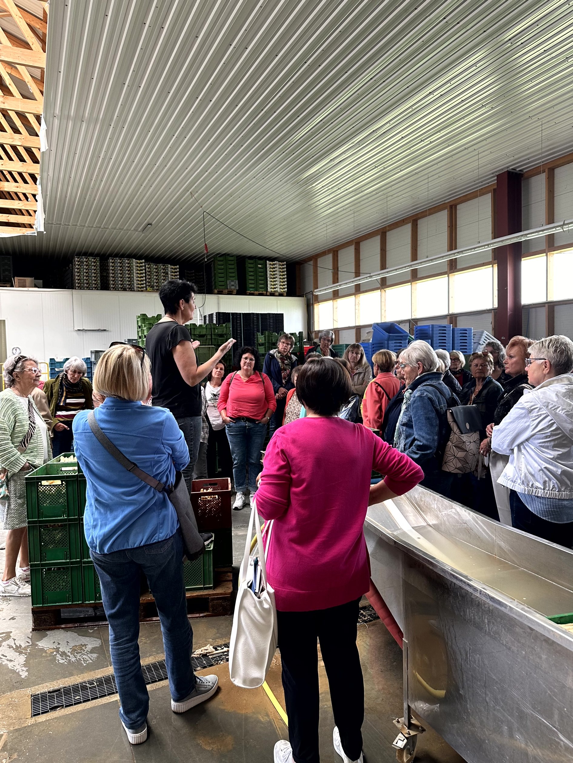Das erste Ziel war der Spargel- und Erdbeerhof der Familie Scheuler in Löchgau, wo die Mitreisenden viel über den Anbau, die Ernte und die Vermarktung des Spargels erfuhren. Im angrenzenden Hofladen mit Café konnten regionale Produkte erworben und der hofeigenen Spargel probiert werden.