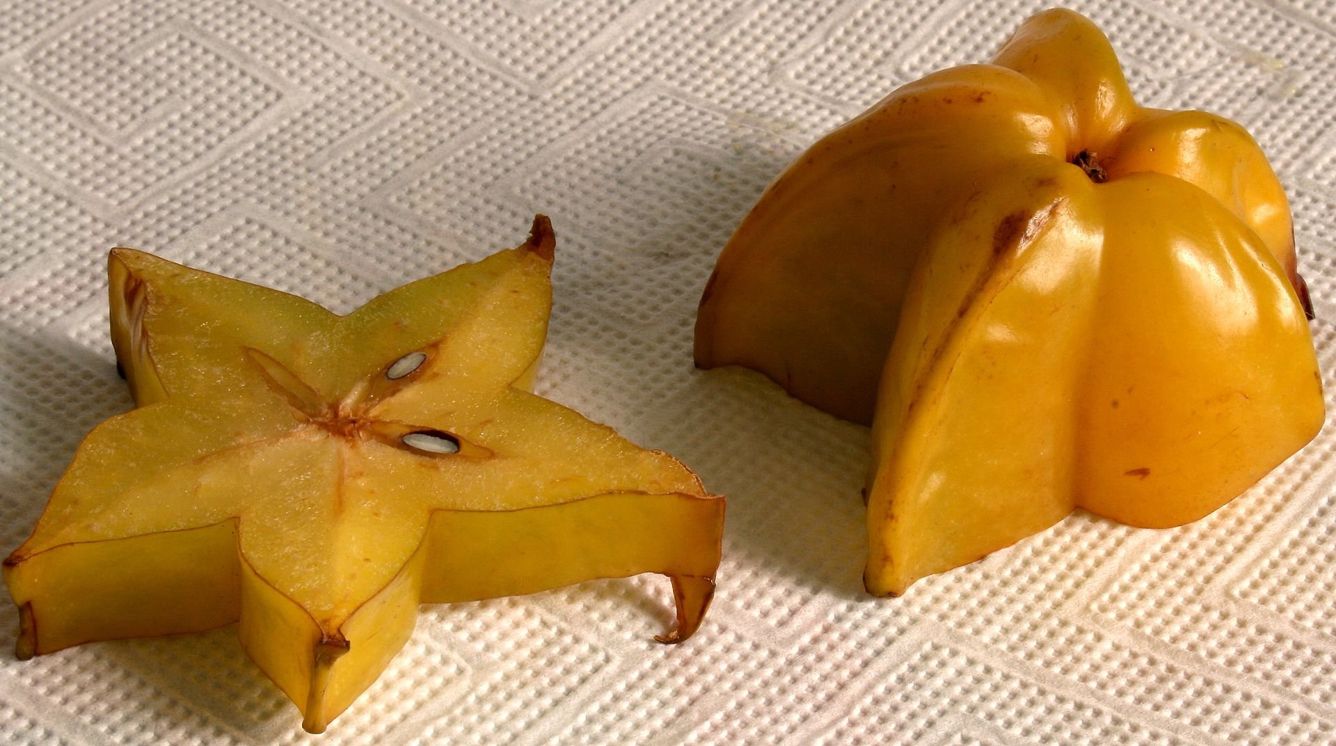 sie quer aufgeschnitten die Form fünfzackiger Sterne besitzt. Sternfrüchte können