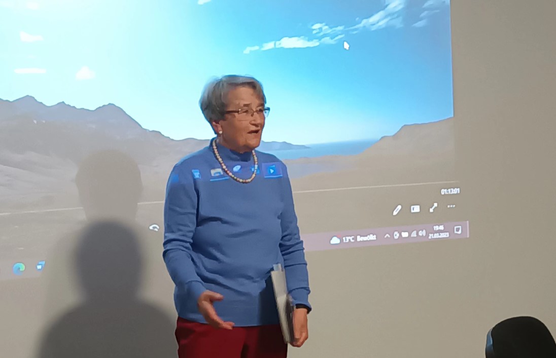 Luise Gugel, Mitbewohnerin und langjährige Mieterin des Hauses am Kufsteiner Platz, berichtete anhand einer filmischen Reisedokumentation über ihre spannende Reise zwischen vielen Inseln, Gletschern und einer großen Anzahl von Tieren, die in der Antarktis leben. Es gibt dort zahlreiche Arten von Pinguinen, Seevögeln und Walen zu bestaunen – sogar große und schwere Seeleoparden sind dort anzutreffen und zu bestaunen.