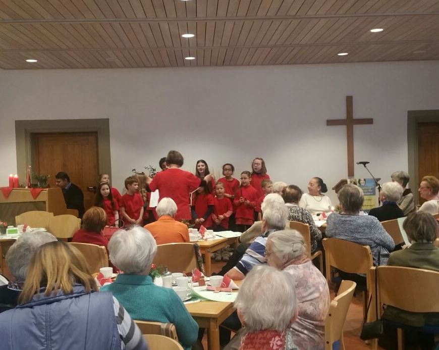 Die Kinder des Kinderchores „Jakurrende“, mit ihrer erfrischend kindlichen Unbeschwertheit, unter Leitung von Gudrun Gross, am Klavier begleitet von Kirchenmusikdirektor Ulrich Knörr, sorgten für die musikalische Gestaltung mit internationalen Liedern zum Advent.