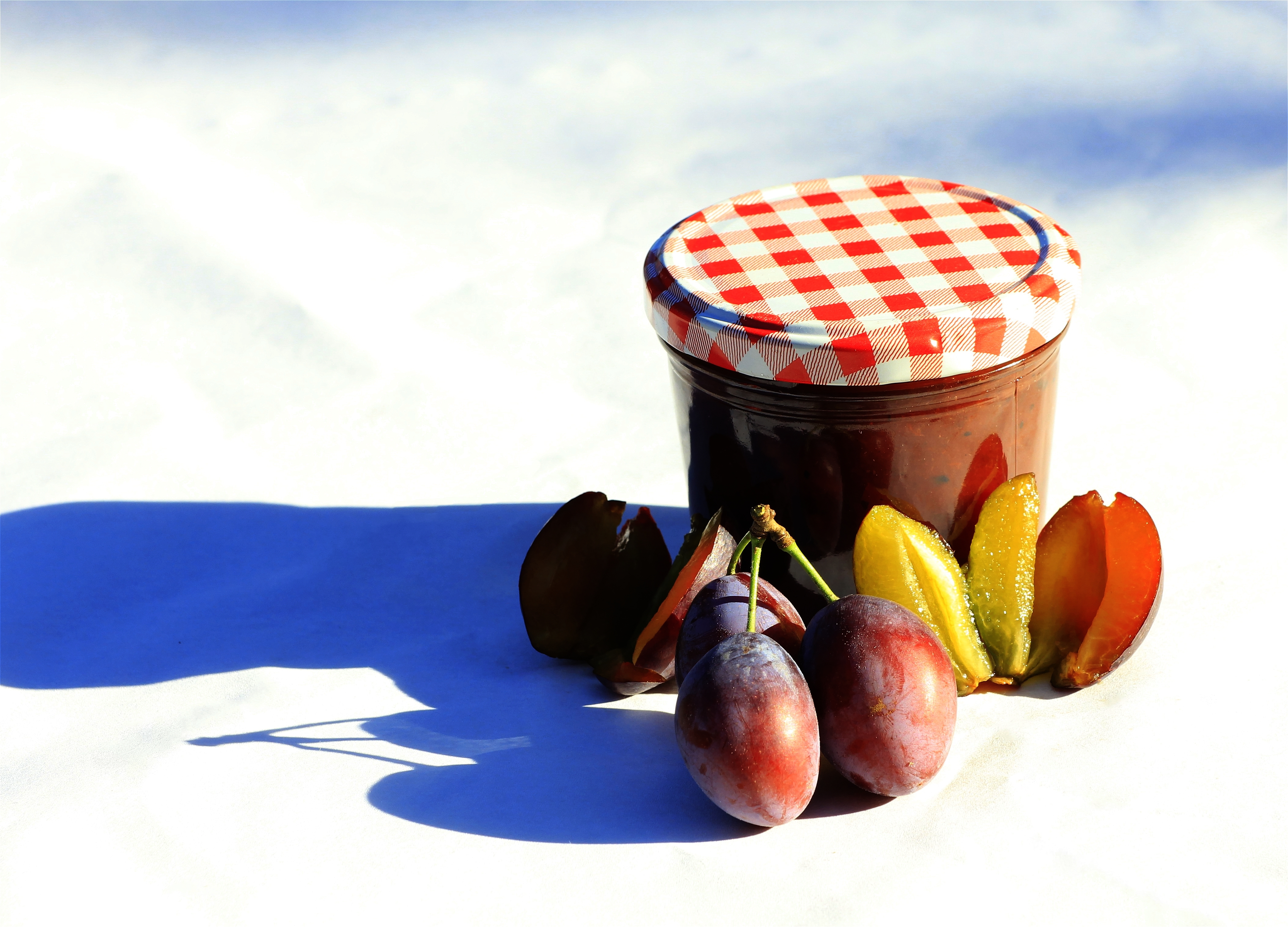 Den Bräter aus dem Backofen nehmen, das Tee-Ei entfernen. Die Zwetschgen mit einem Stabmixer pürieren, nach Geschmack kann ein Schuss guter Rum zugegeben werden, in Gläser füllen und verschließen.